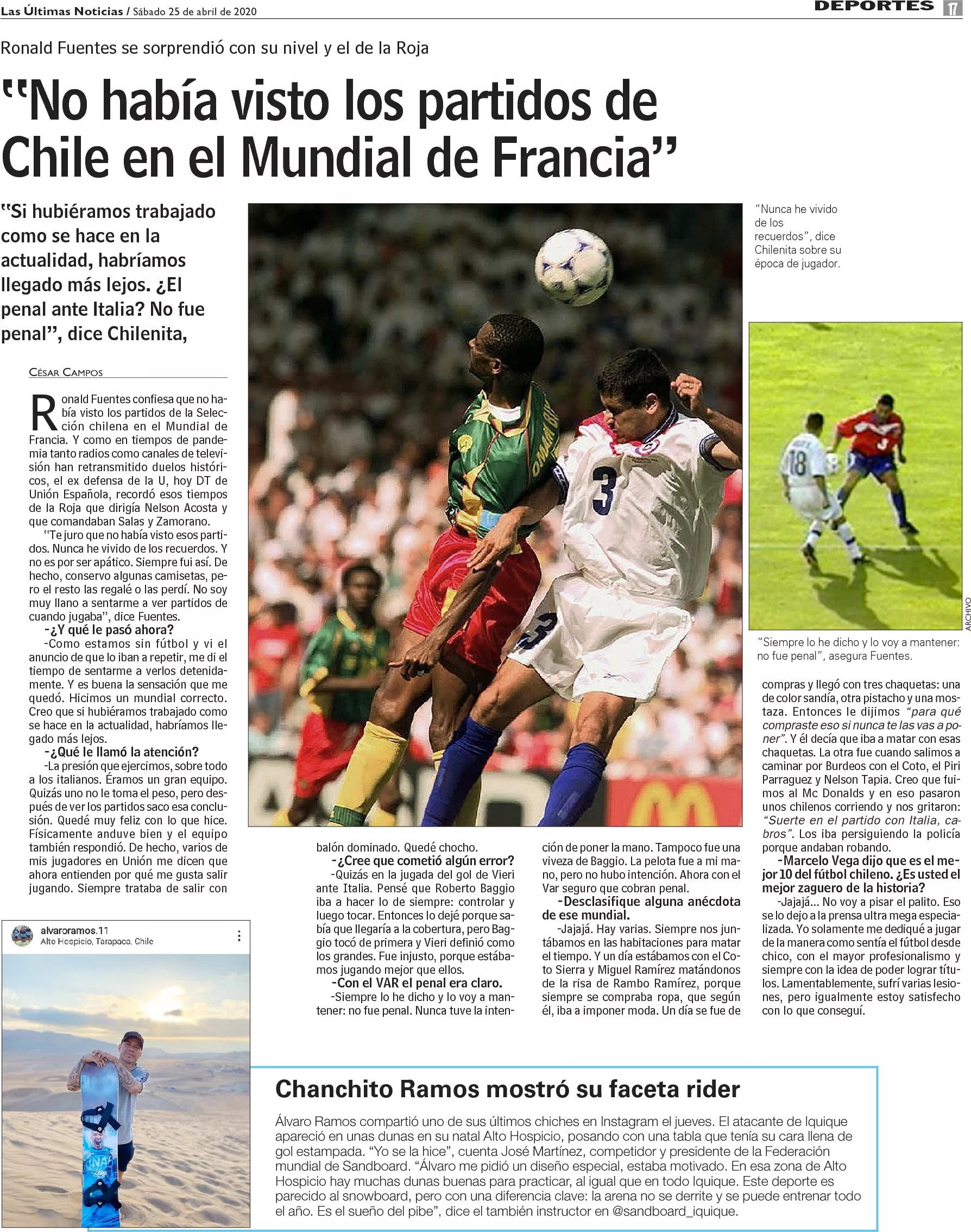 "No había visto los partidos de Chile en el Mundial de Francia"