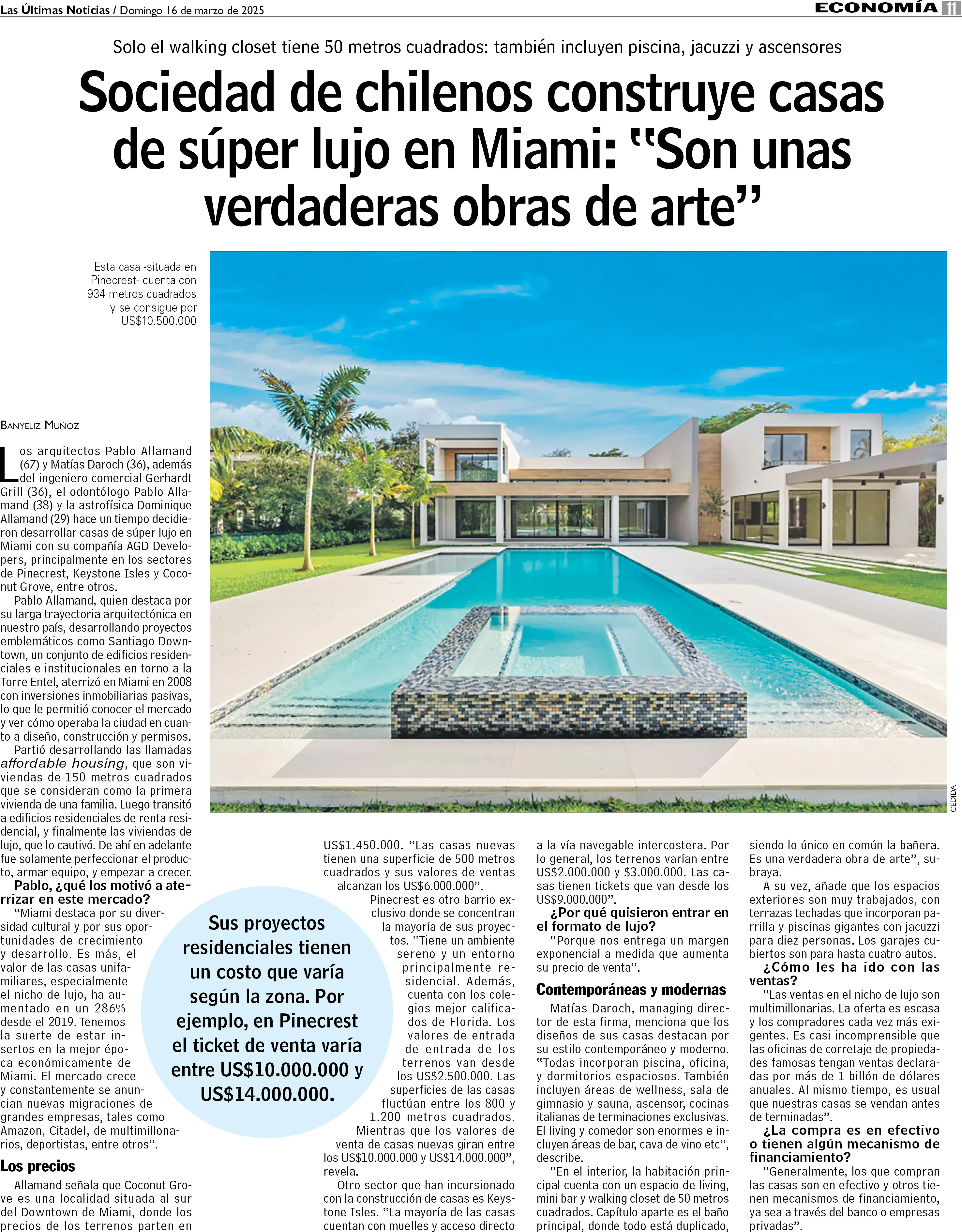 Sociedad de chilenos construye casas de súper lujo en Miami: "Son unas verdaderas obras de arte"