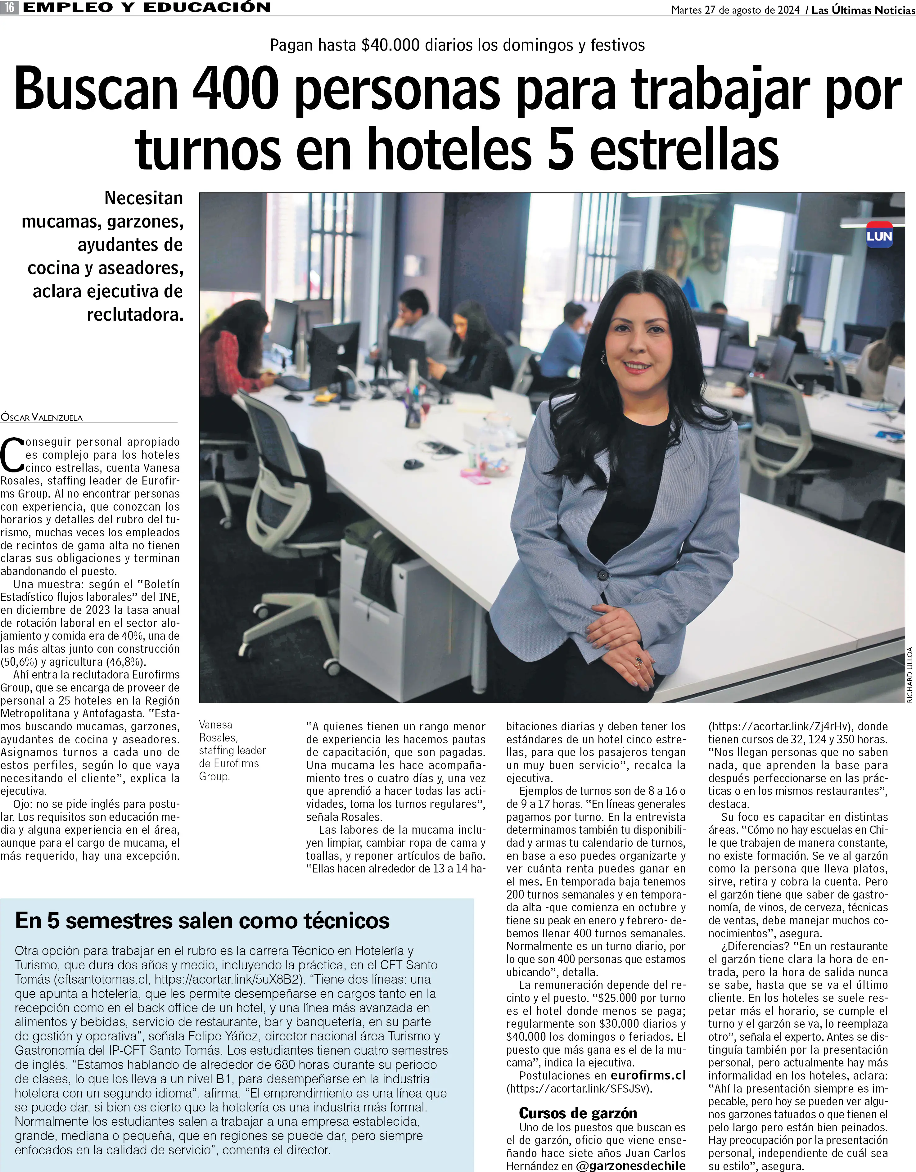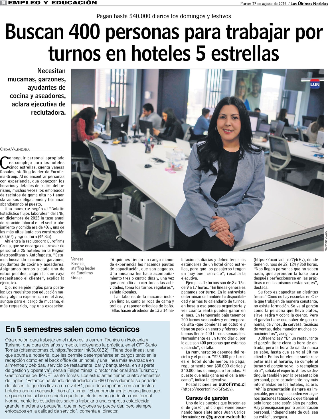 Buscan 400 personas para trabajar por turnos en hoteles 5 estrellas