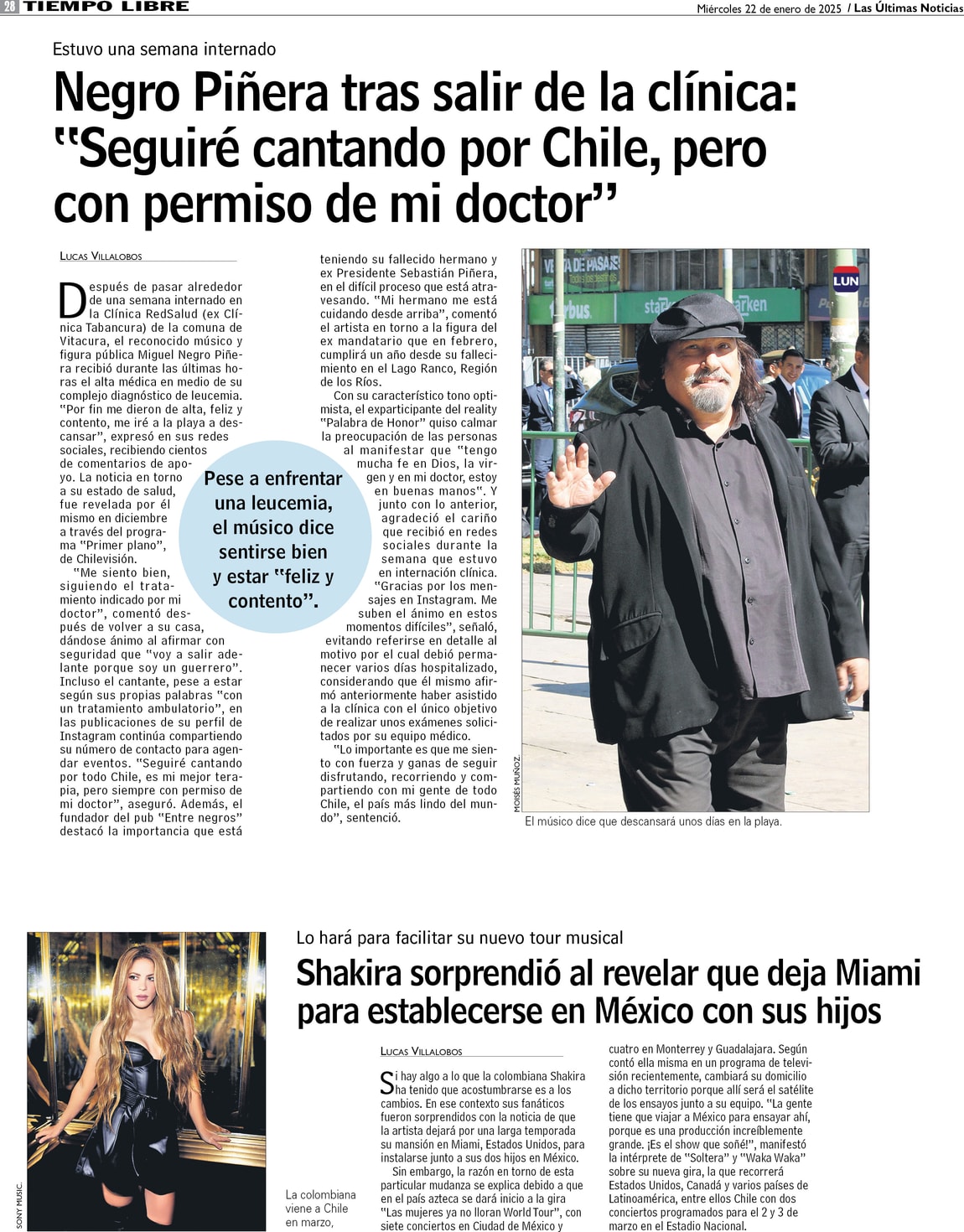 Negro Piñera tras salir de la clínica: "Seguiré cantando por Chile, pero con permiso de mi doctor"