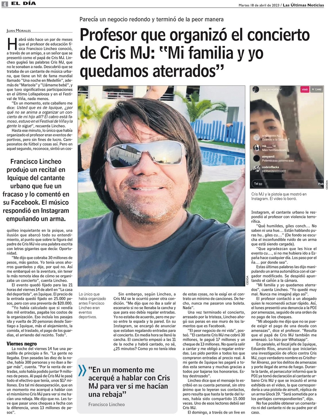 Profesor que organizó el concierto de Cris MJ: "Mi familia y yo quedamos aterrados"