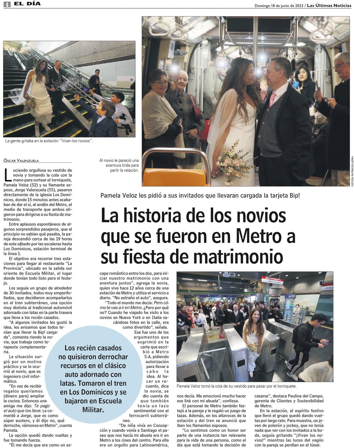 La historia de los novios que se fueron en Metro a su fiesta de matrimonio