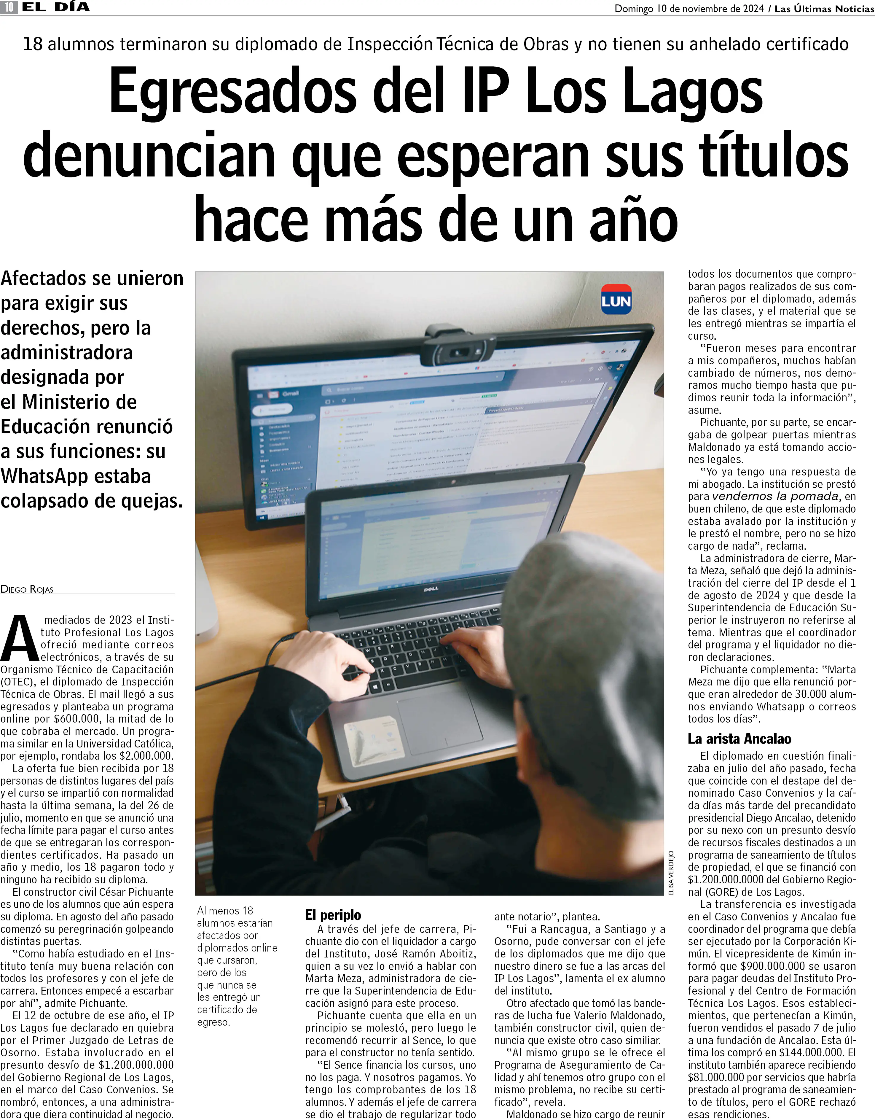 Egresados del IP Los Lagos denuncian que esperan sus títulos hace más de un año
