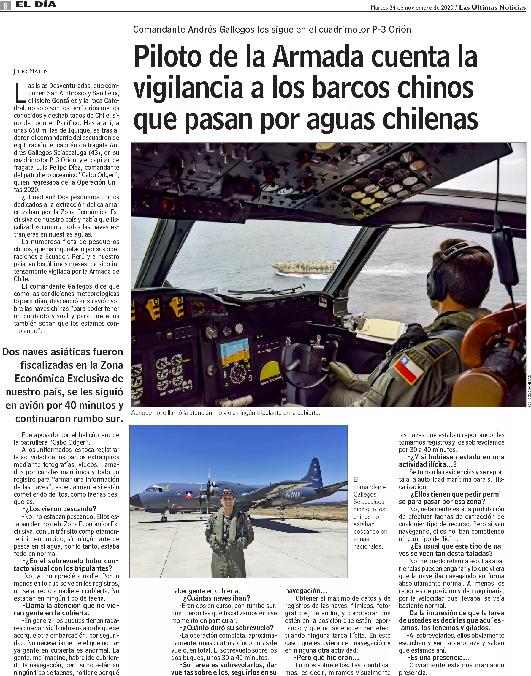Piloto de la Armada cuenta la vigilancia a los barcos chinos que pasan por aguas chilenas