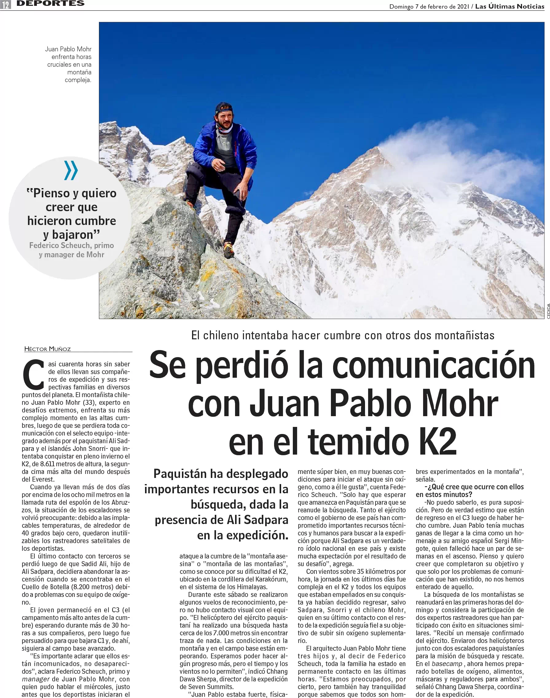 Se perdió la comunicación con Juan Pablo Mohr en el temido K2