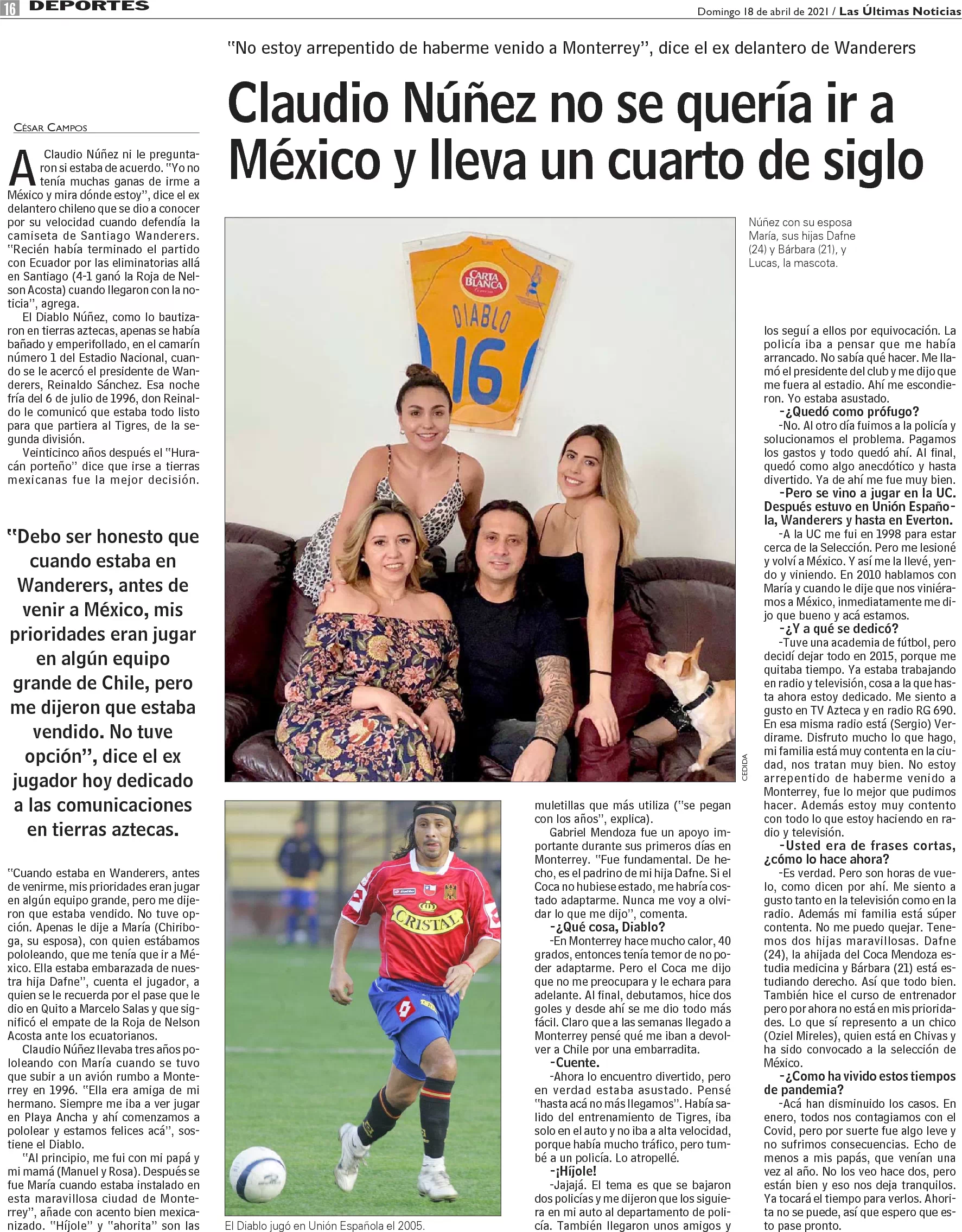 El Diablo Núñez, ex Wanderers, cuenta su vida en Monterrey