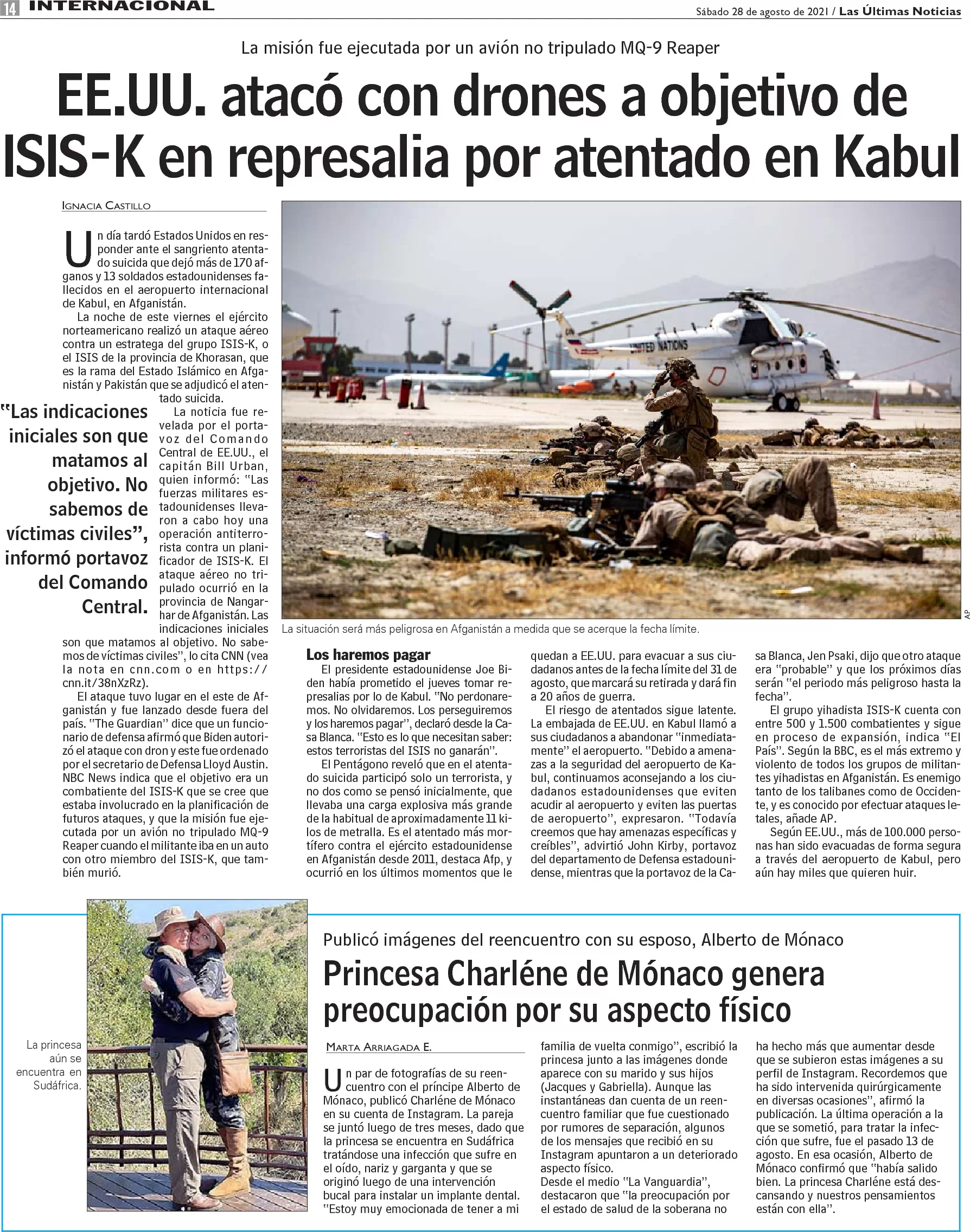EE.UU. atacó con drones a objetivo de ISIS-K en represalia por atentado en Kabul