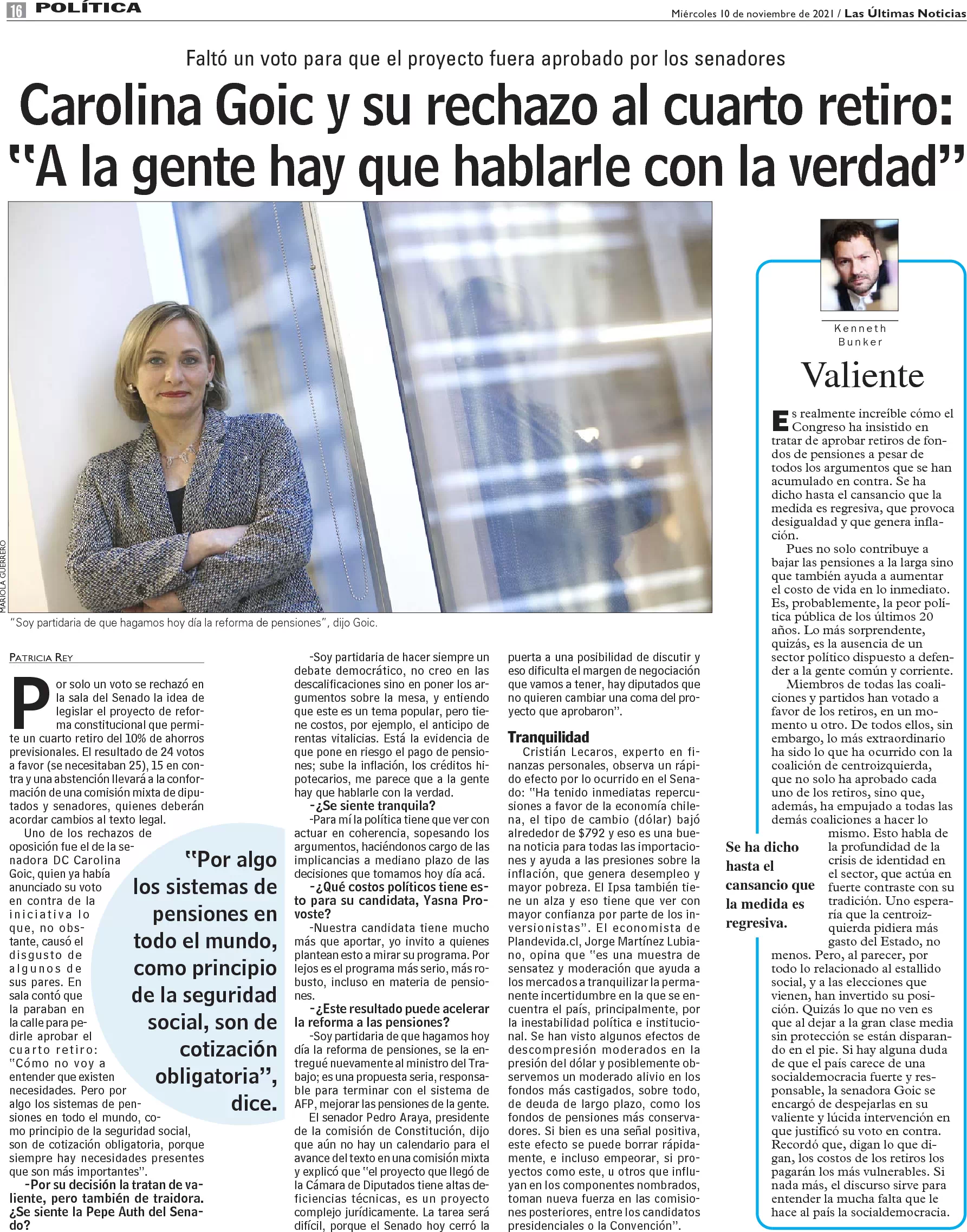Carolina Goic explica su rechazo al cuarto retiro