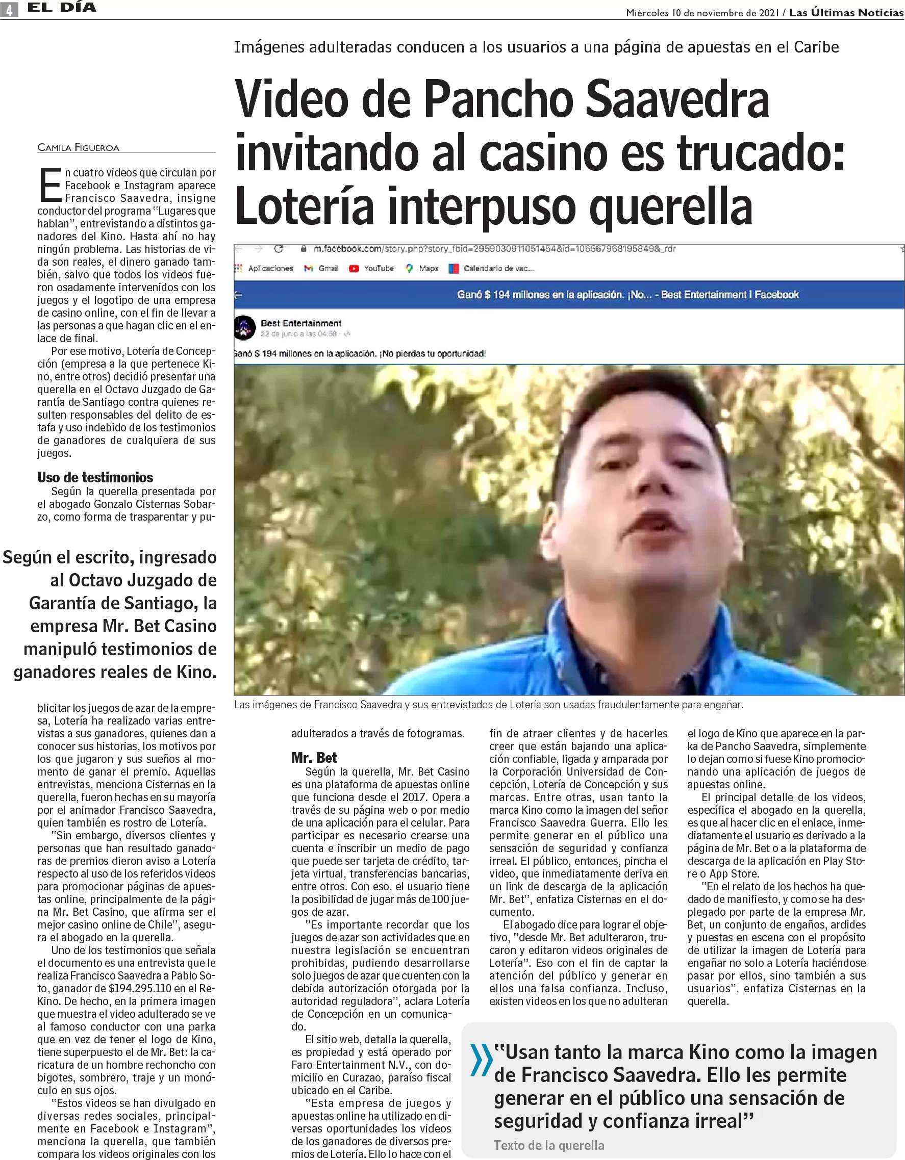 Lotería se querella por video trucado de Pancho Saavedra