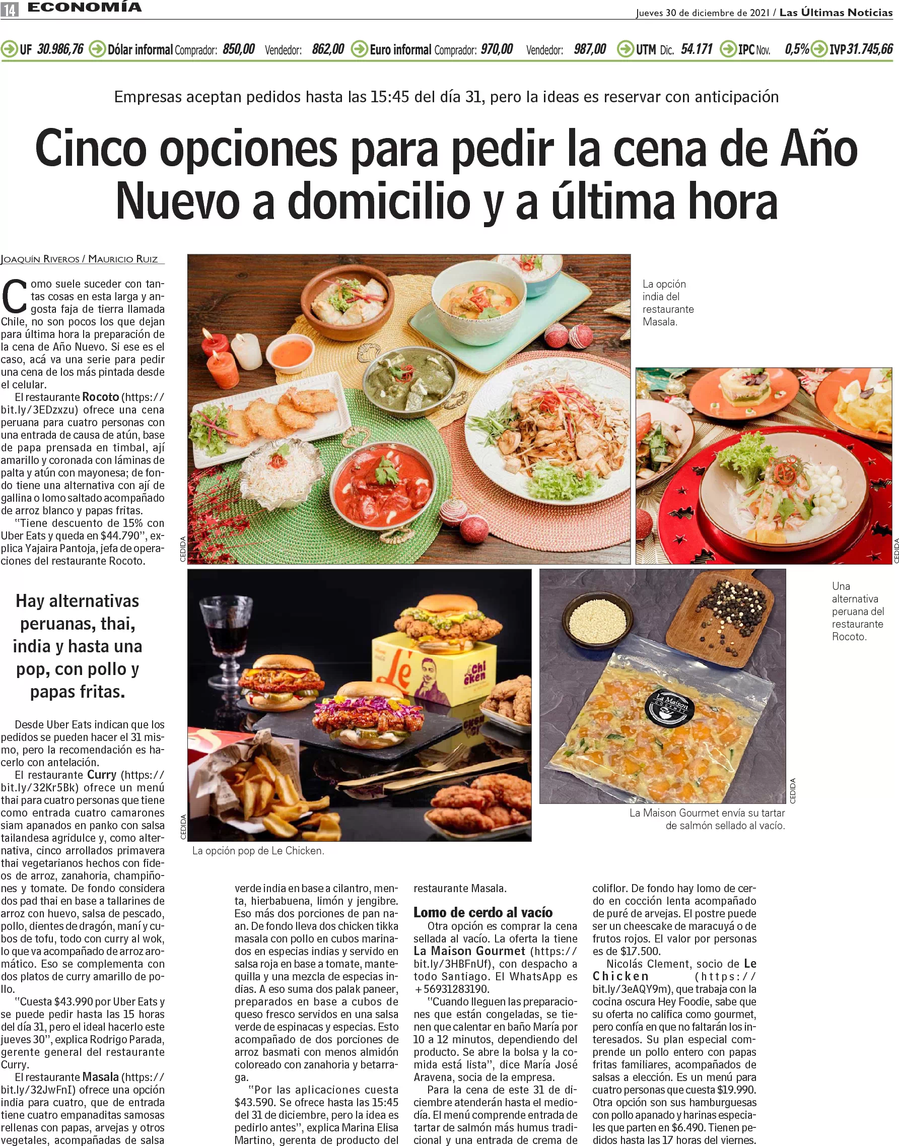 Opciones para pedir la cena de Año Nuevo a domicilio y a última hora