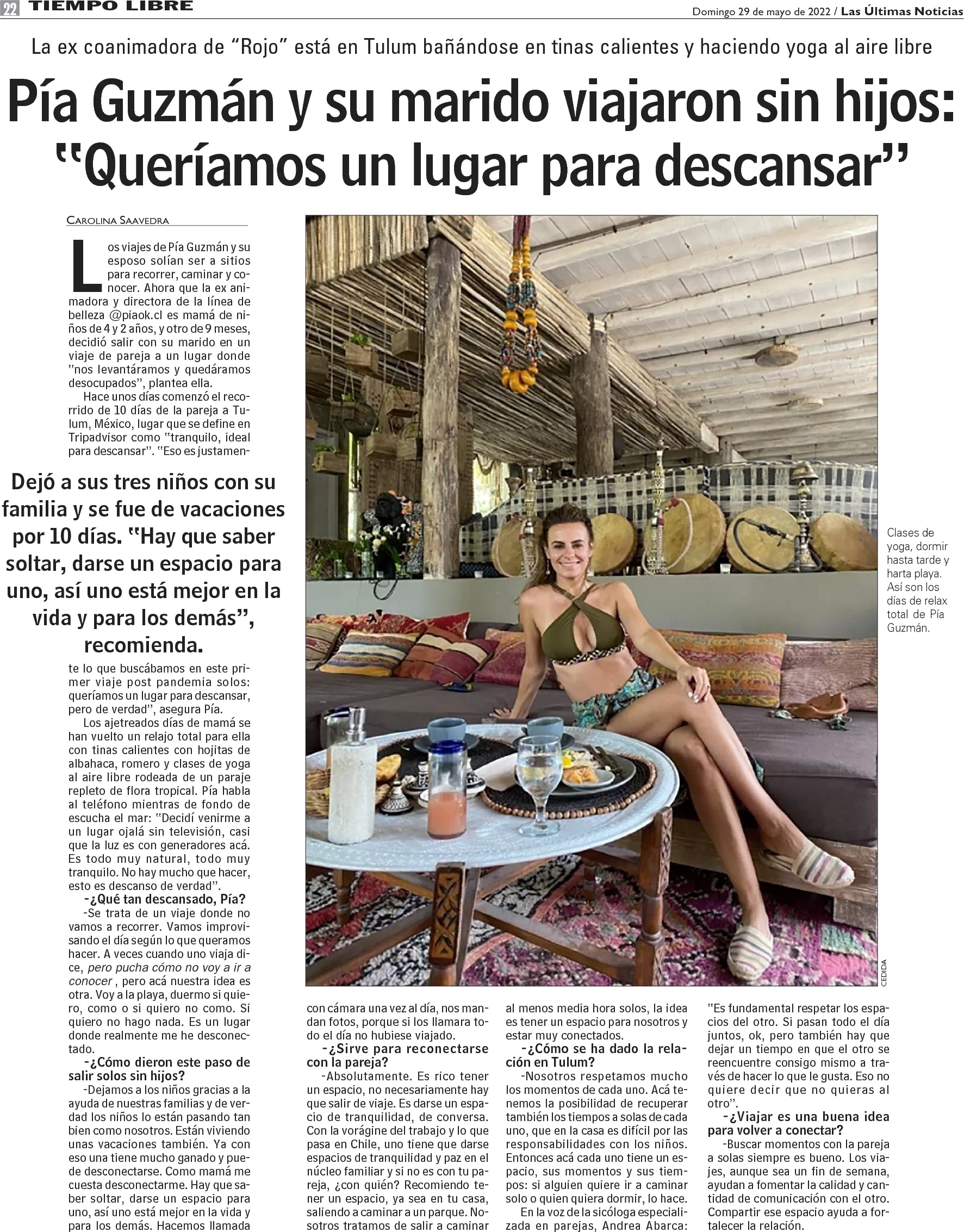 Pía Guzmán y su marido viajaron sin hijos: "Queríamos un lugar para descansar"