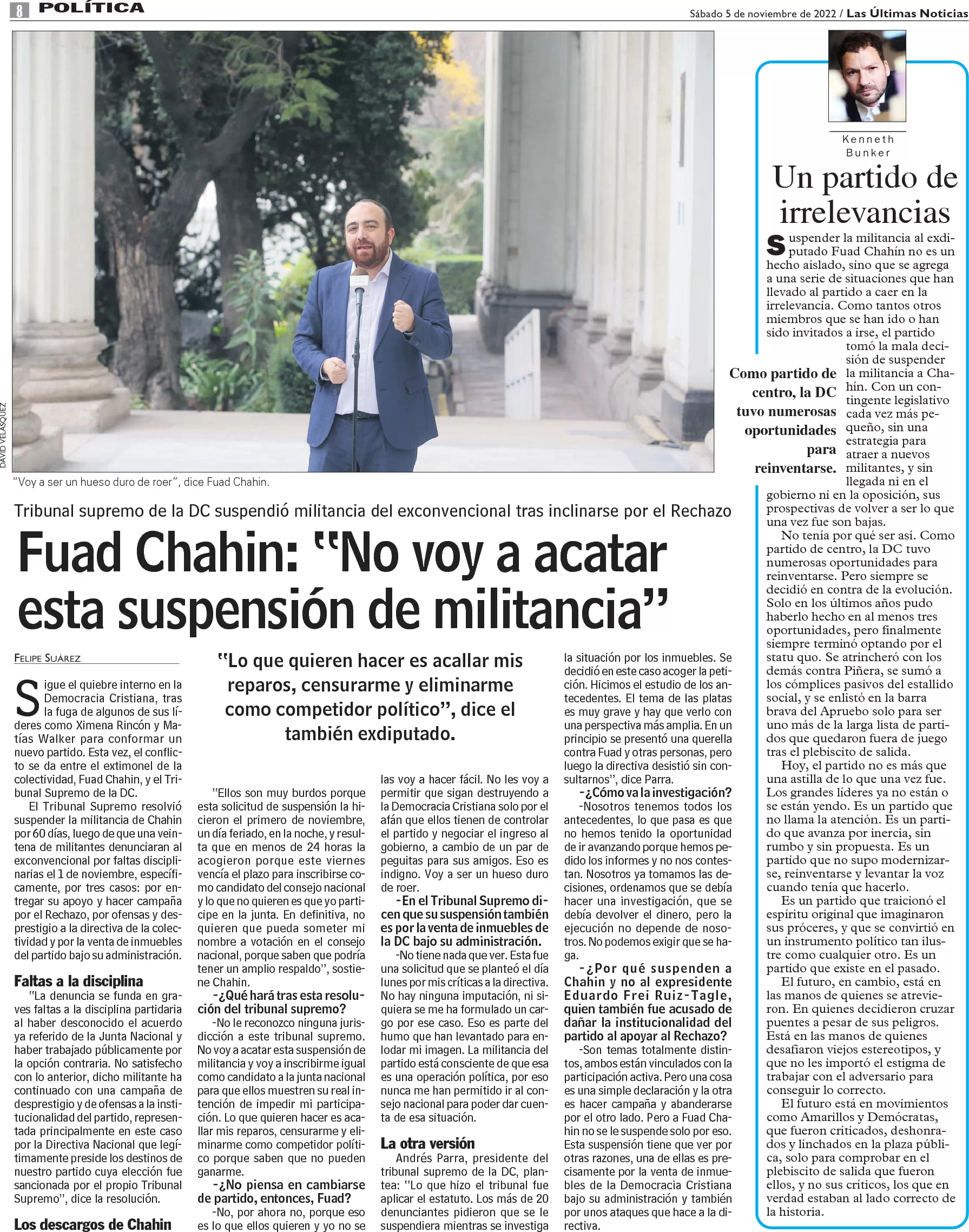 Fuad Chahin (DC): "No voy a acatar esta suspensión de militancia"