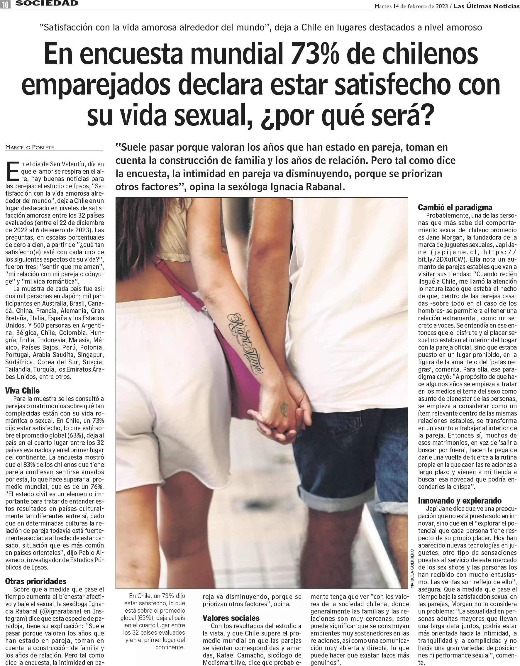 En encuesta mundial 73% de chilenos emparejados declara estar satisfecho con su vida sexual, ¿por qué será?