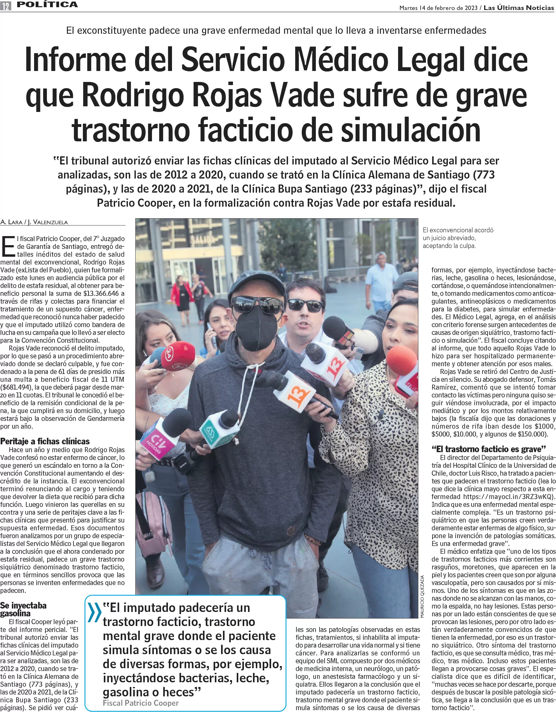 Informe médico: el trastorno de simulación de Rodrigo Rojas Vade