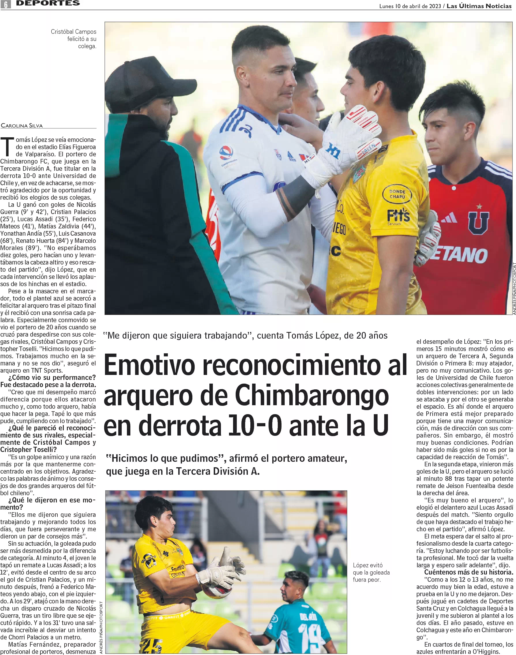 Emotivo reconocimiento al arquero de Chimbarongo en derrota 10-0 ante la U