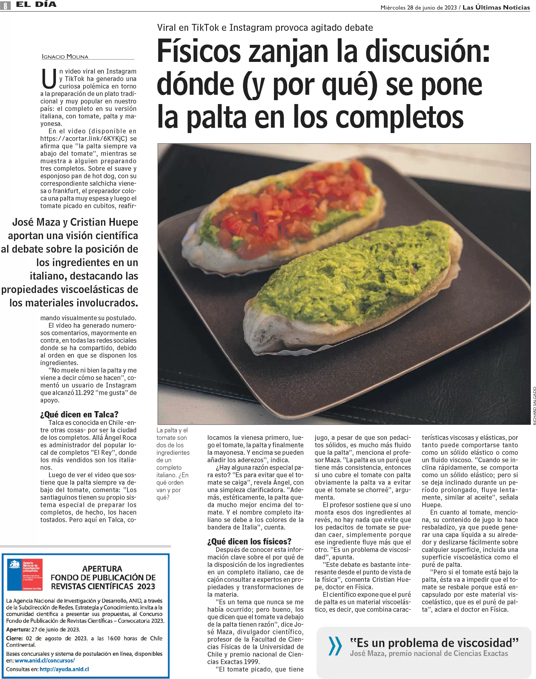 Físicos responden: ¿dónde se pone la palta en el completo?
