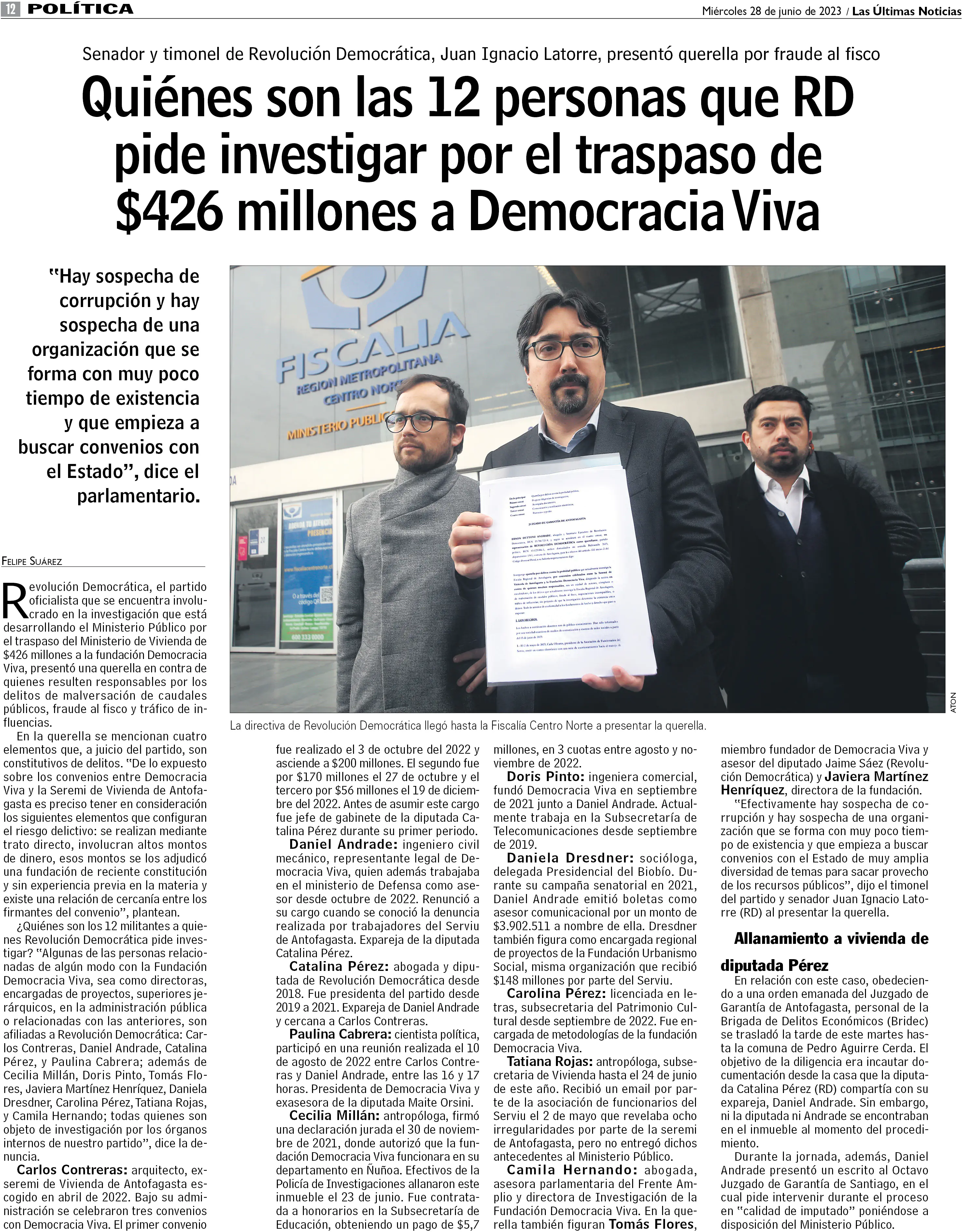 Quiénes son las 12 personas que RD pide investigar por el traspaso de $426 millones a Democracia Viva