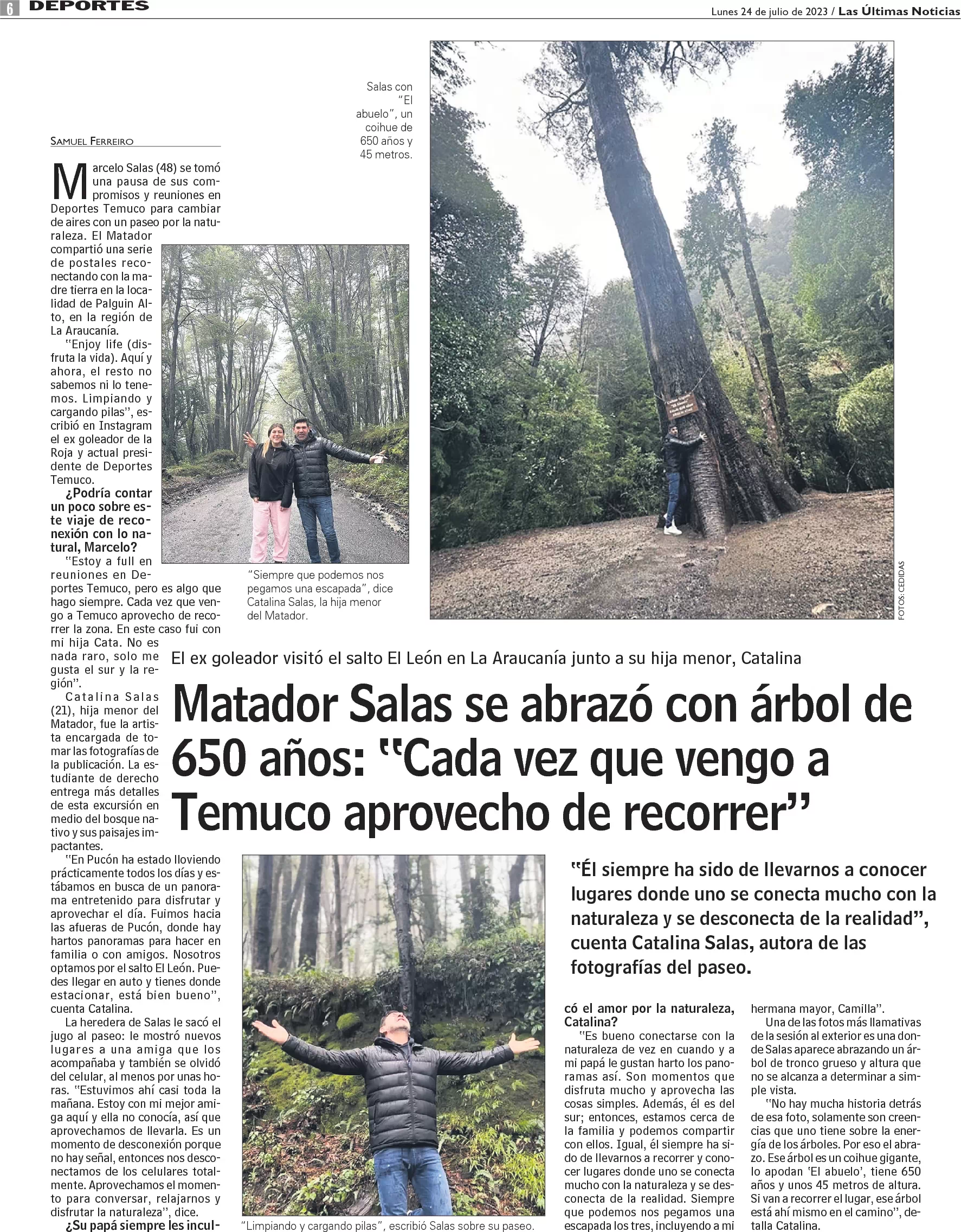 Matador Salas se abrazó con árbol de 650 años: "Cada vez que vengo a Temuco aprovecho de recorrer"