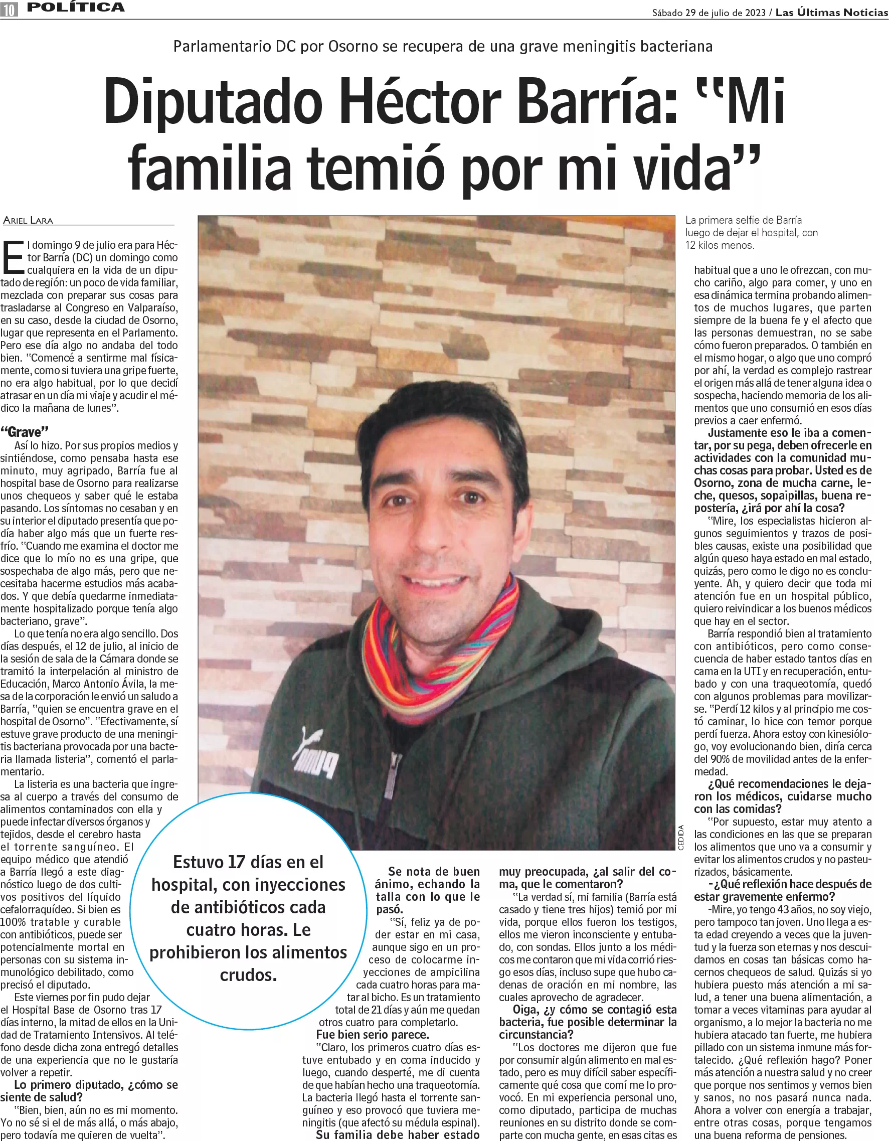 Dramático relato de diputado que cayó en coma por una bacteria