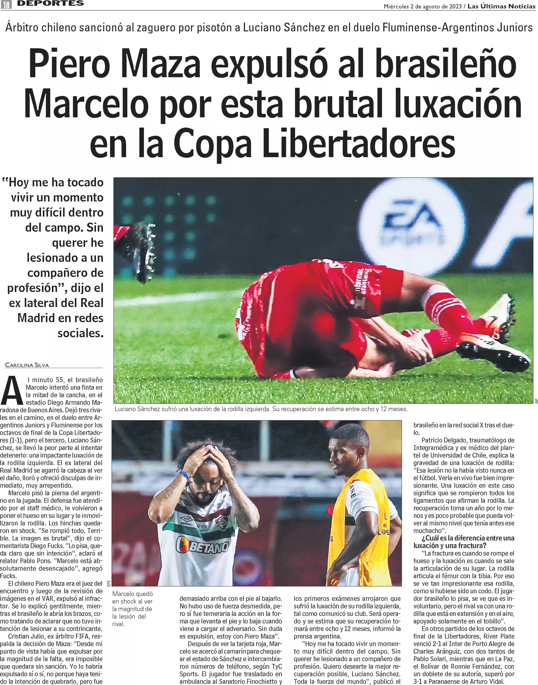 Piero Maza expulsó al brasileño Marcelo por esta brutal luxación en la Copa Libertadores
