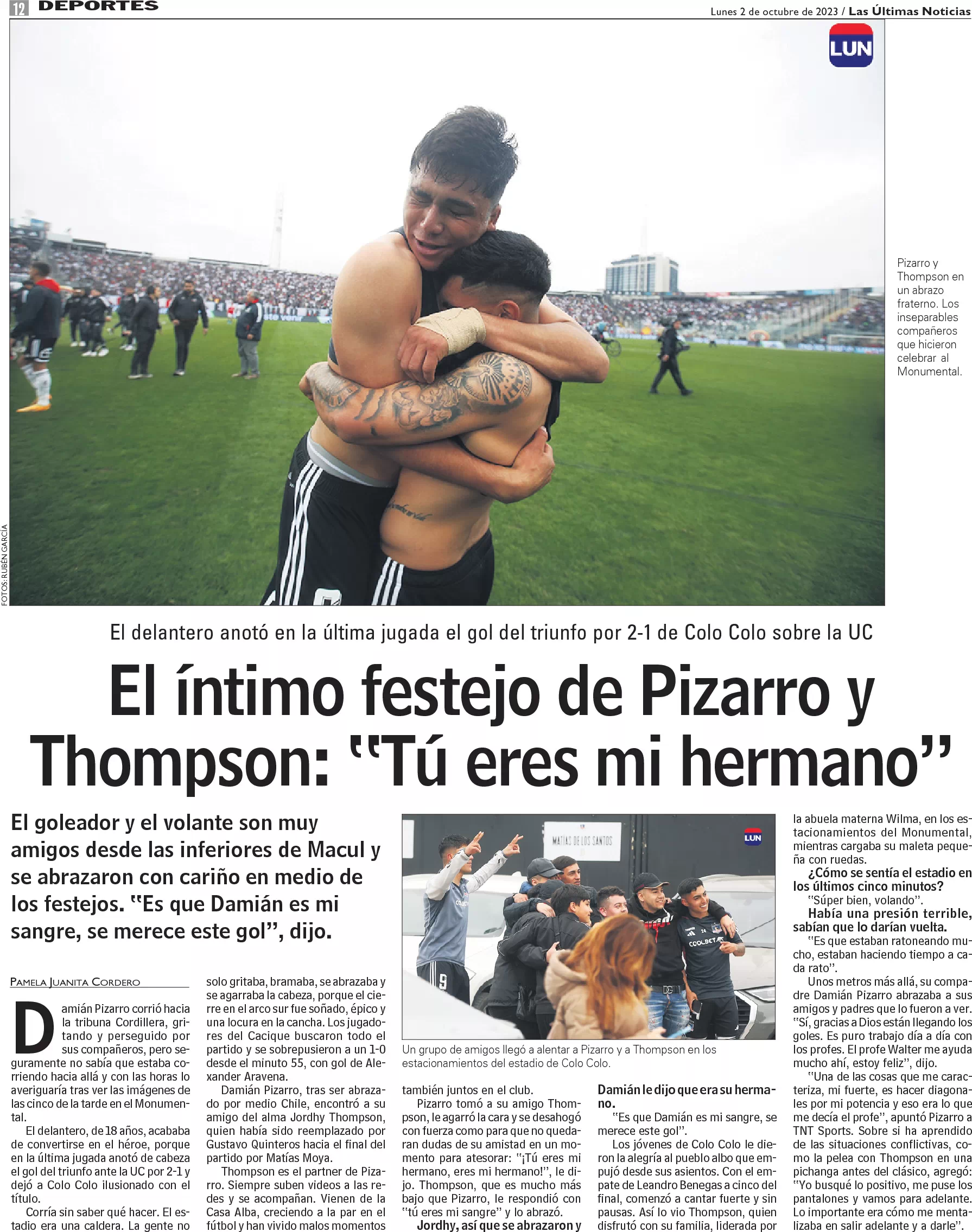 Pizarro a Thompson tras victoria de Colo Colo: "Eres mi hermano"