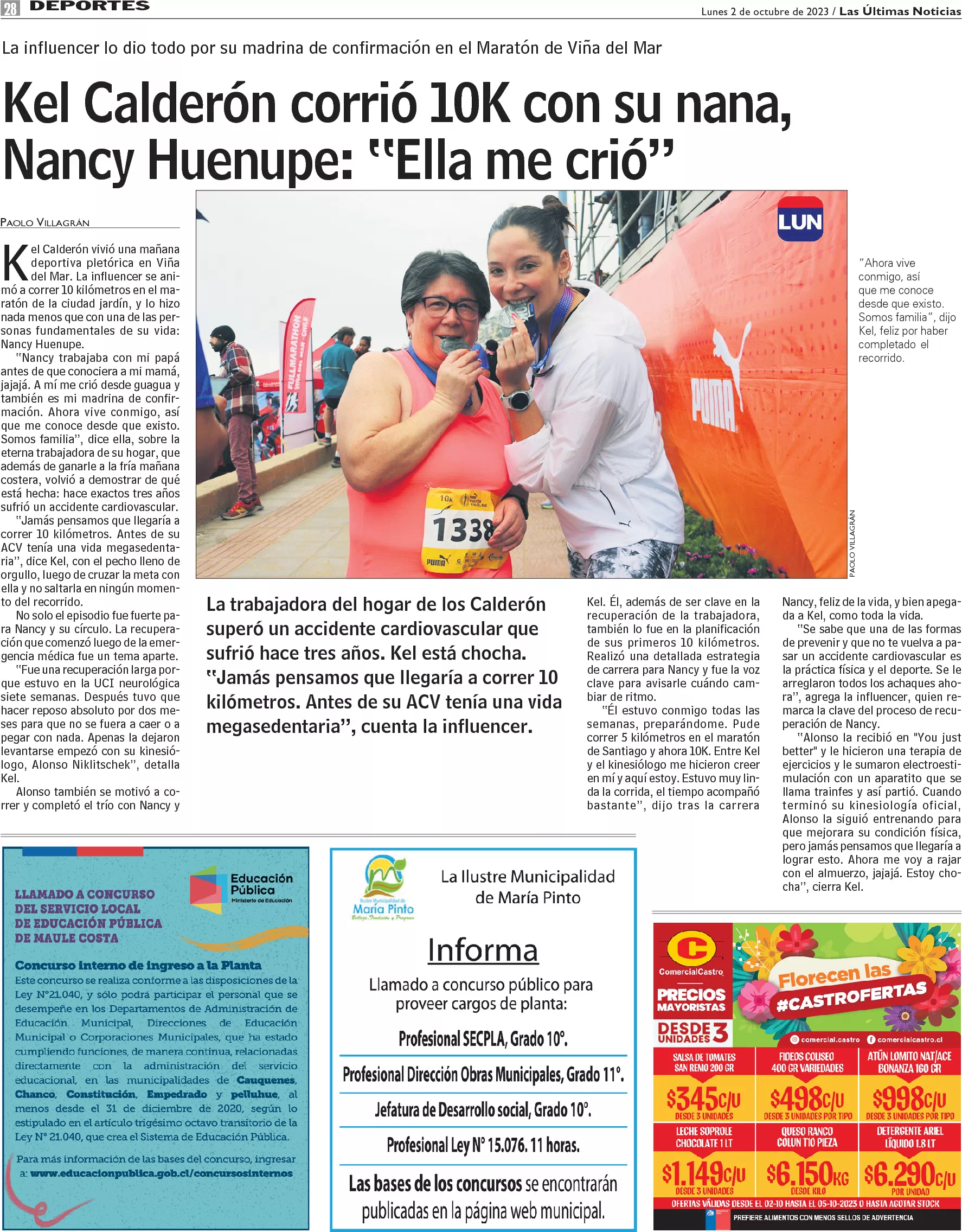Kel Calderón corrió 10K con su nana, Nancy Huenupe: "Ella me crió"