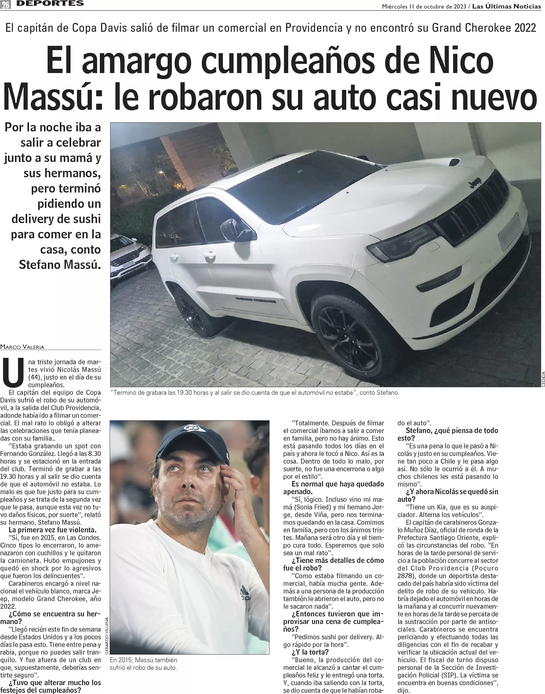 El amargo cumpleaños de Nicolás Massú: le robaron su auto