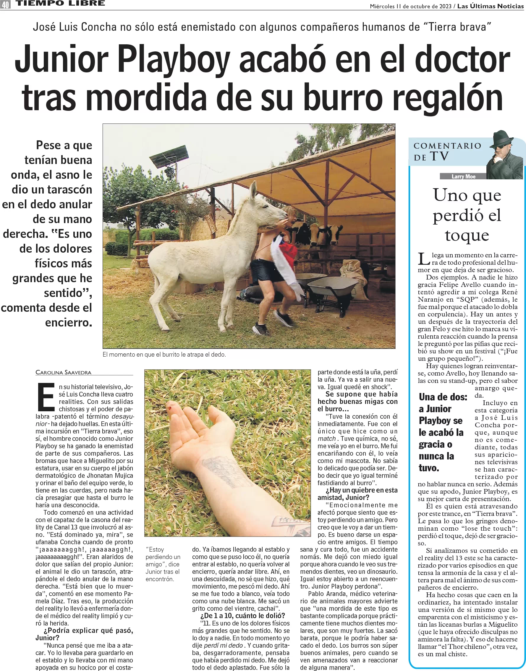 Junior Playboy terminó en el doctor tras mordida de burro