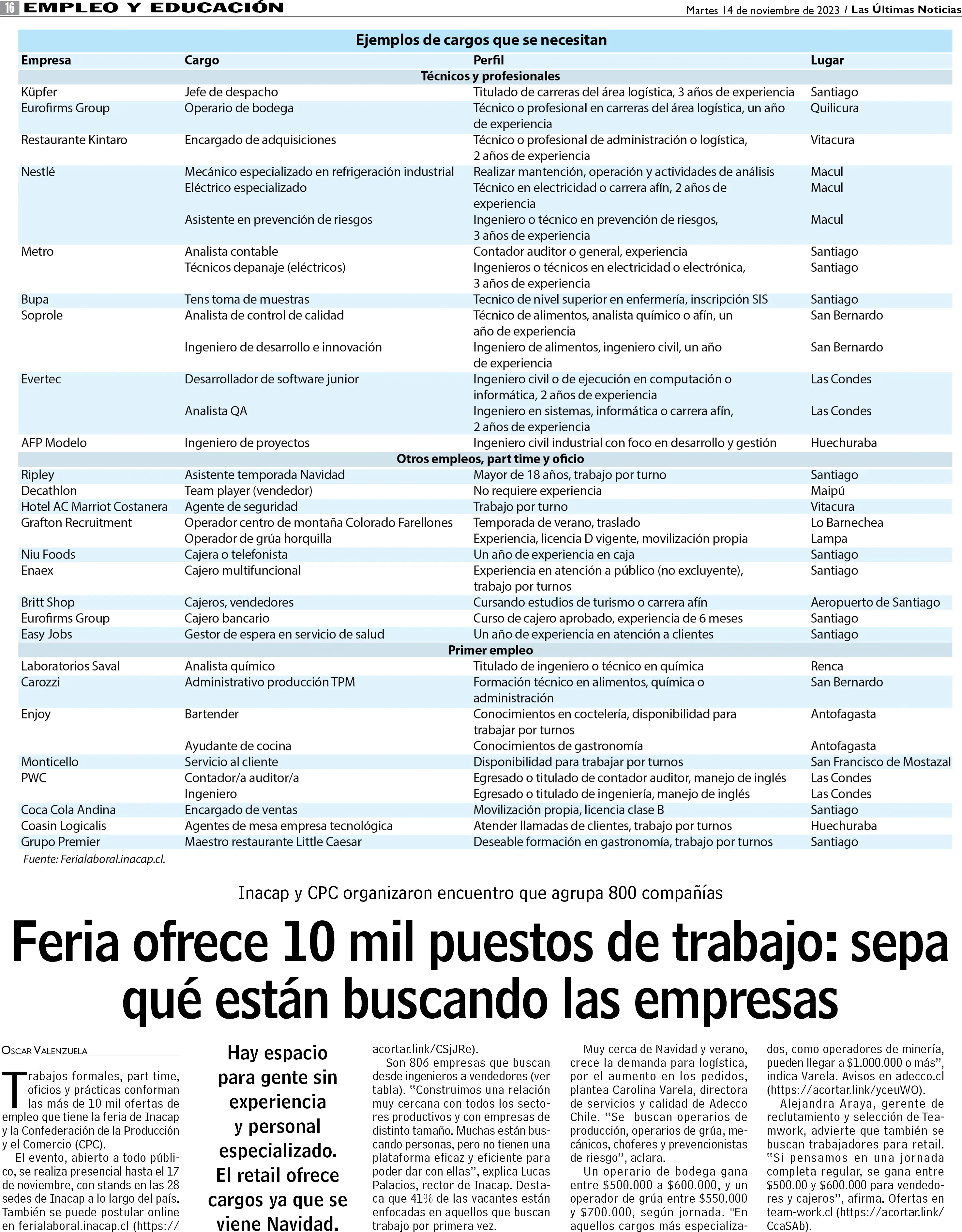 Tabla: feria de Inacap ofrece 10 mil puestos de trabajo