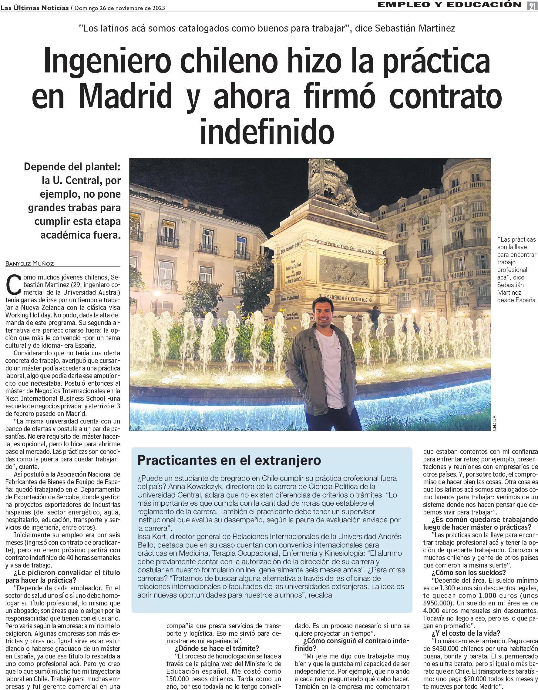 Ingeniero chileno hizo la práctica en Madrid y ahora firmó contrato indefinido