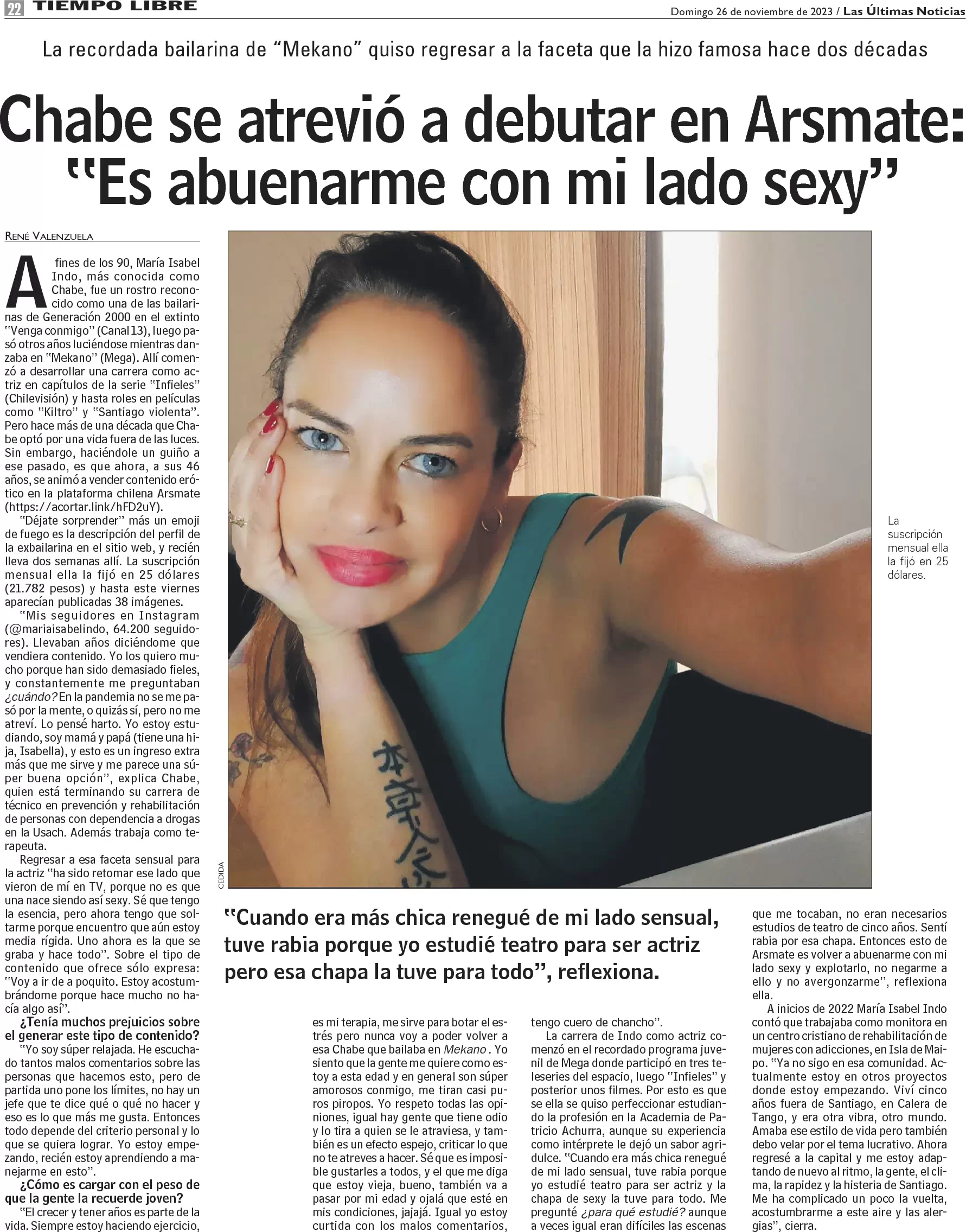 Chabe Indo debutó en Arsmate: "Me abuené con mi lado sexy"