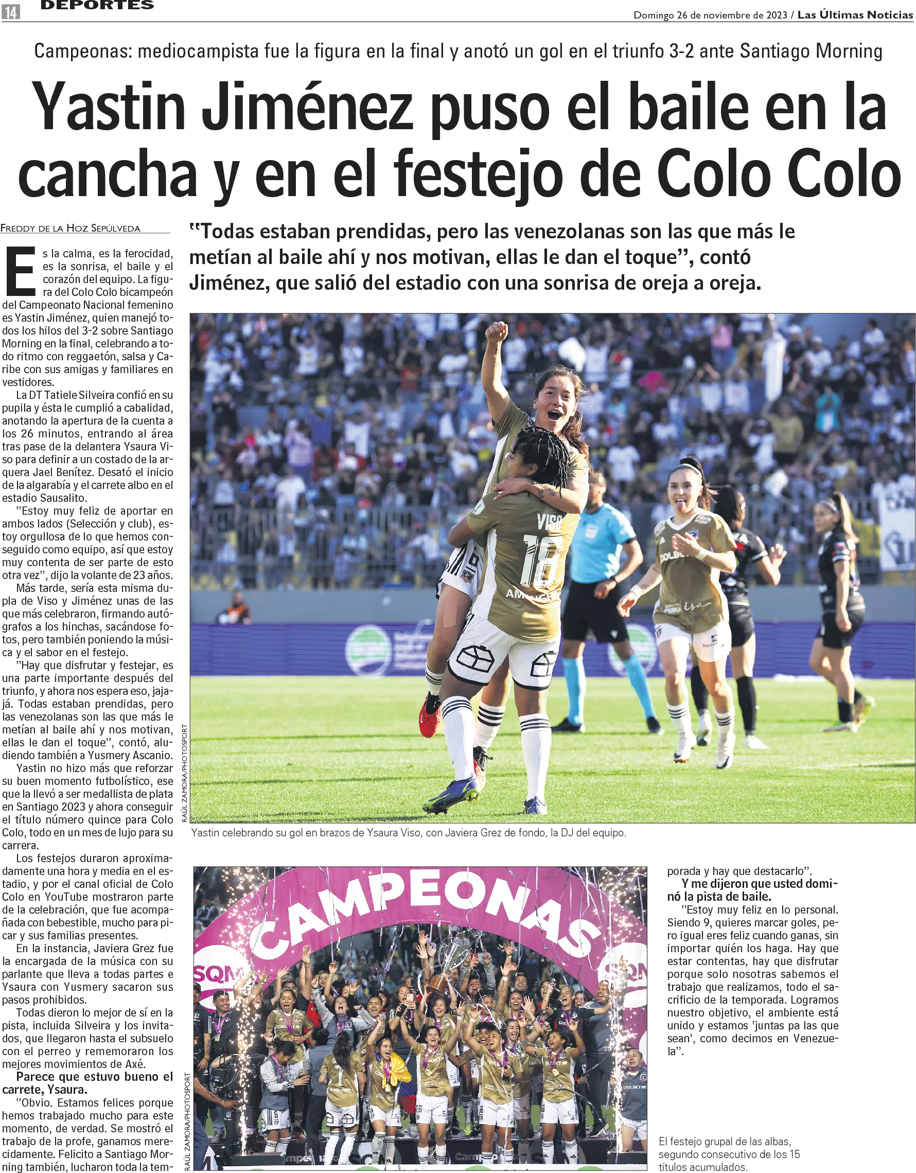 Yastin Jiménez puso el baile en la cancha y en el festejo de Colo Colo