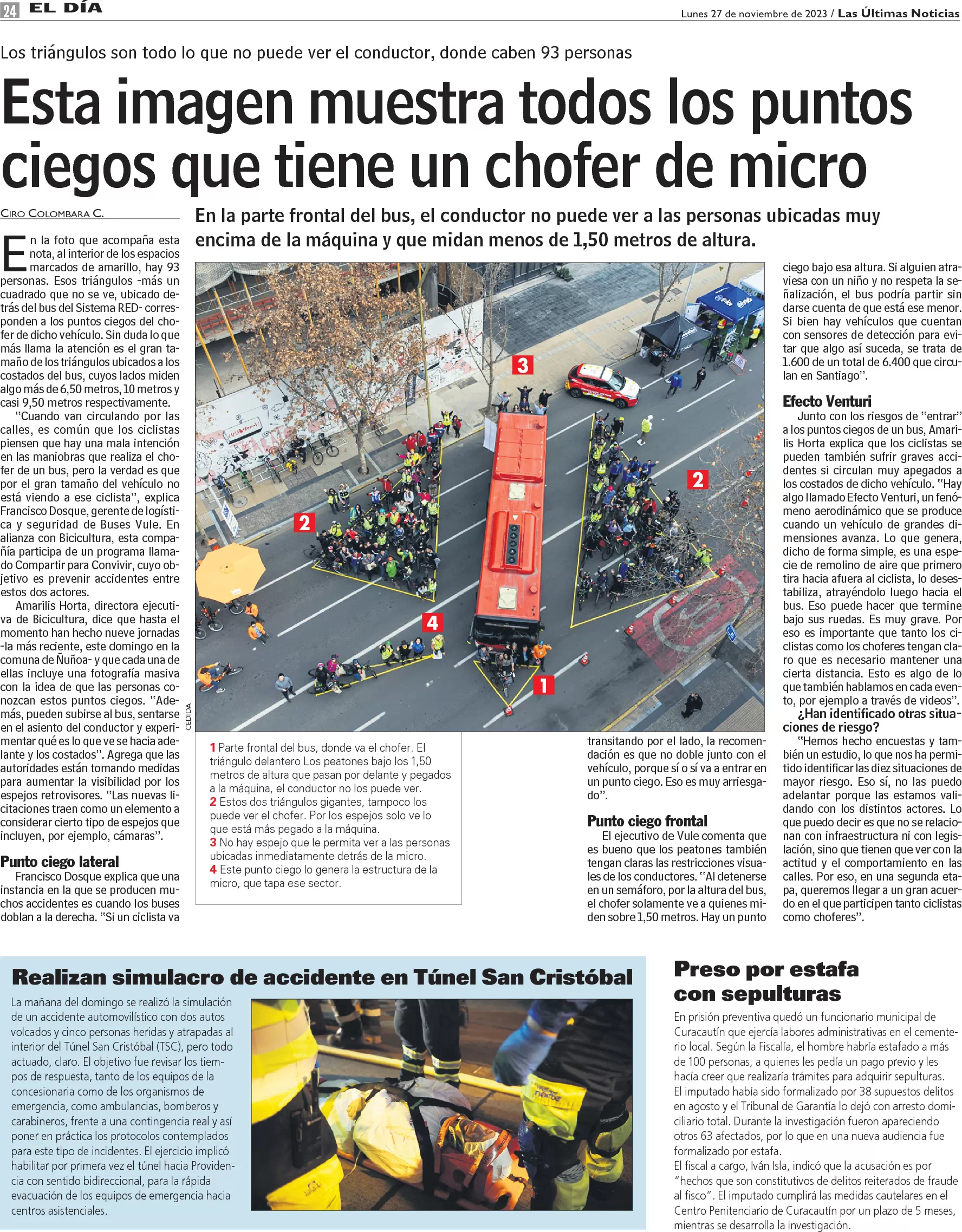 Ojo, ciclistas: foto muestra los puntos ciegos de una micro