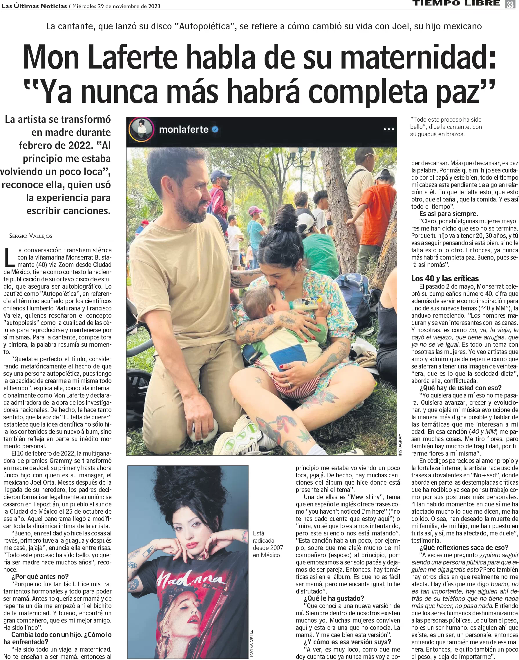 Mon Laferte habla de su maternidad: "Ya nunca más habrá completa paz"