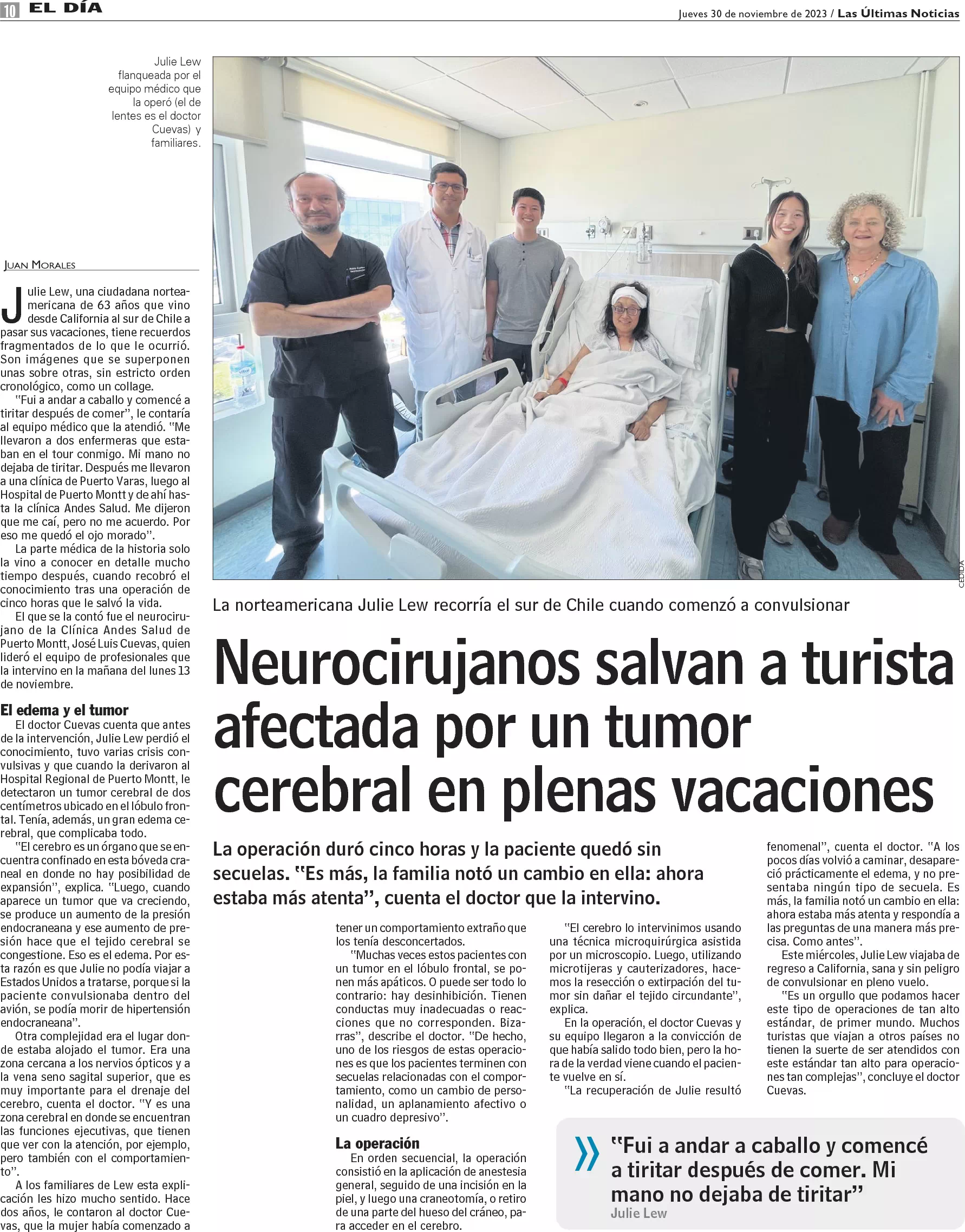 Neurocirujanos salvan a turista gringa que vino de vacaciones