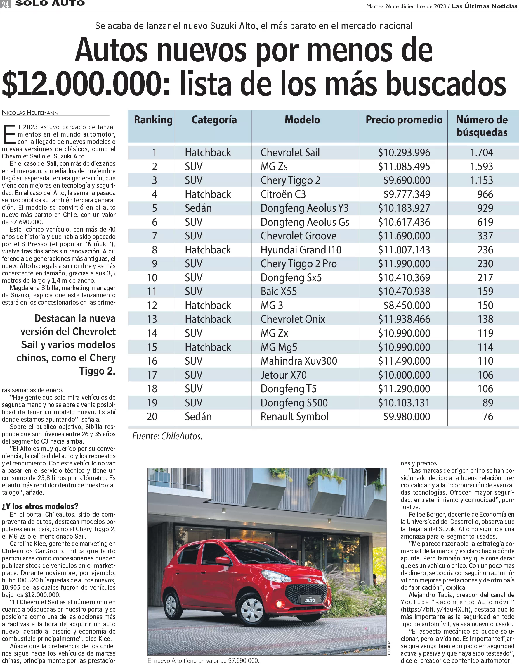 Autos bajo los $12 millones: tabla con los más buscados