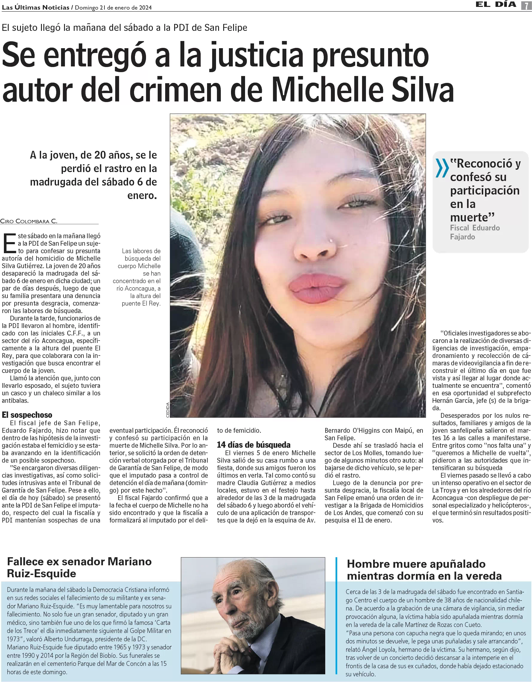 Se entregó a la justicia presunto autor del crimen de Michelle Silva