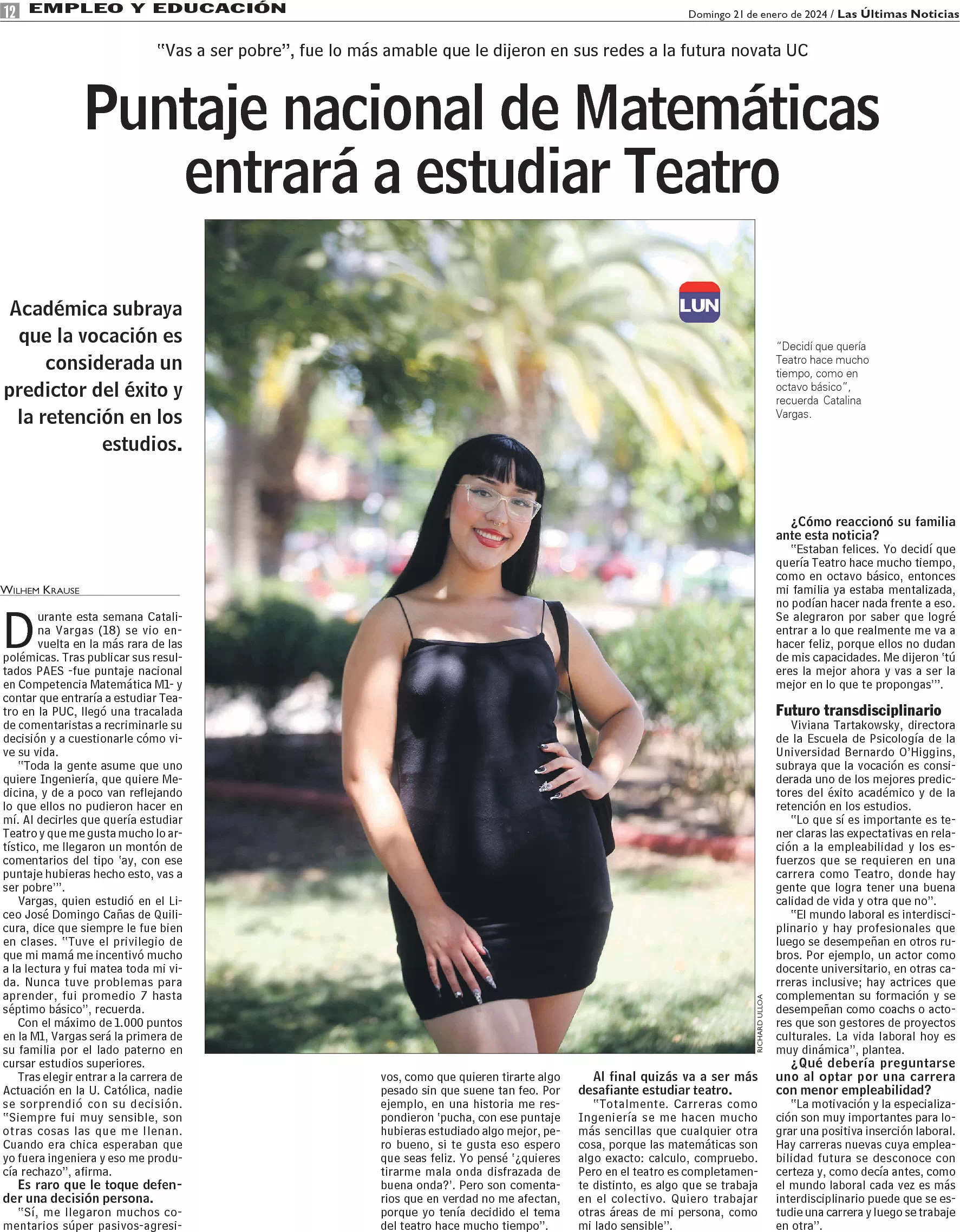 Habla la estudiante que sacó 1.000 puntos en la PAES y estudiará Teatro