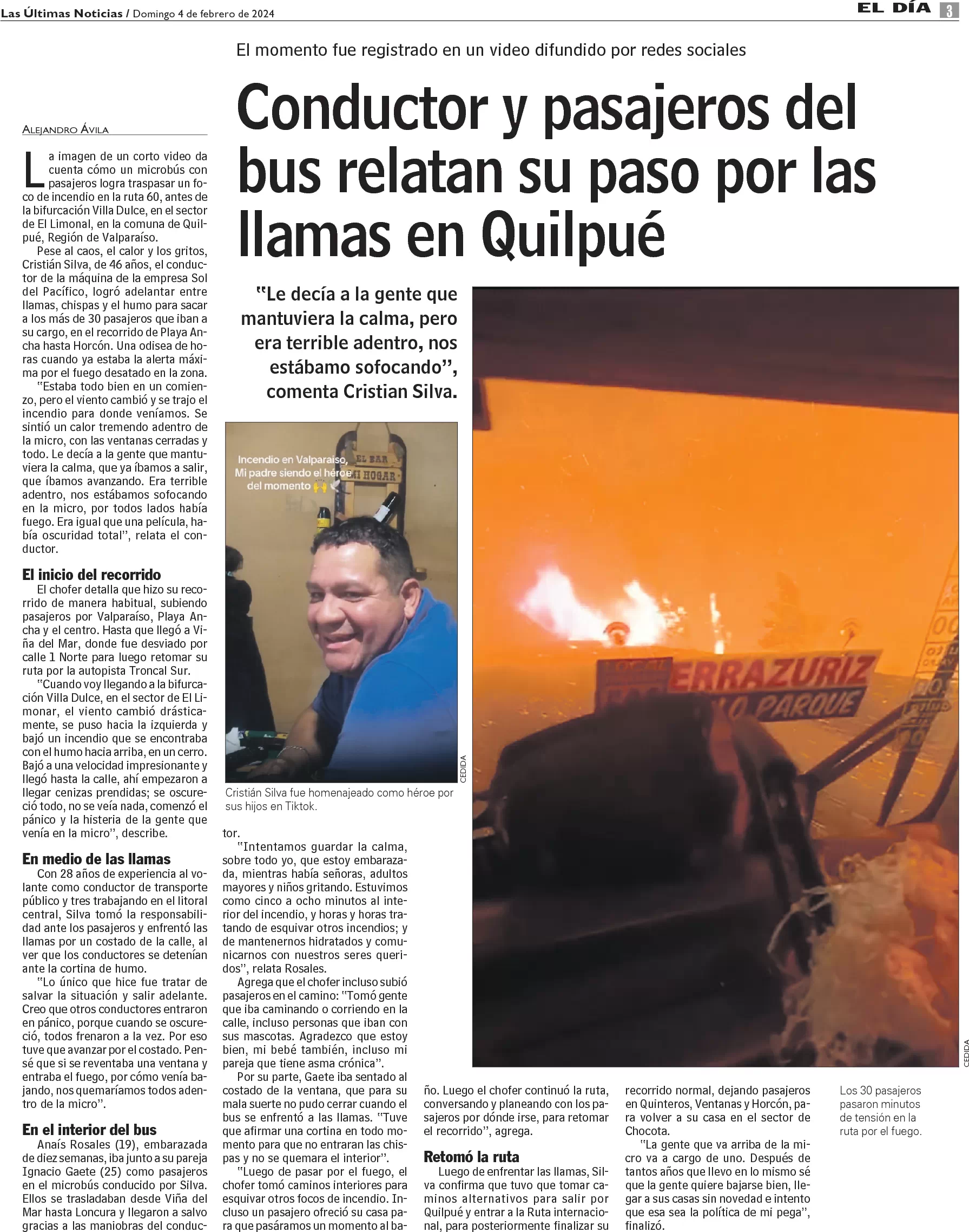 Chofer de micro relata maniobra para salvar a pasajeros de las llamas