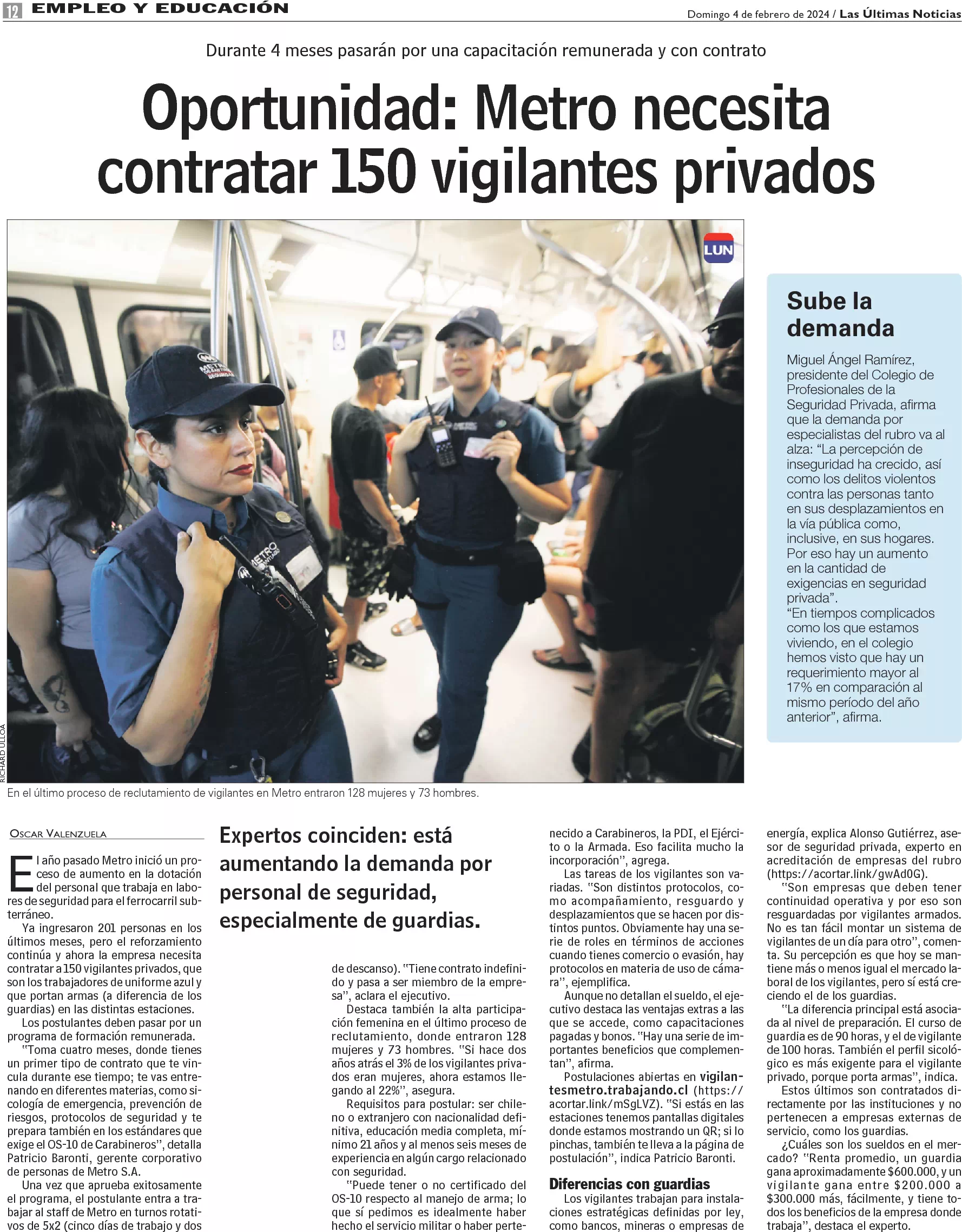 Oportunidad: Metro necesita 150 vigilantes privados