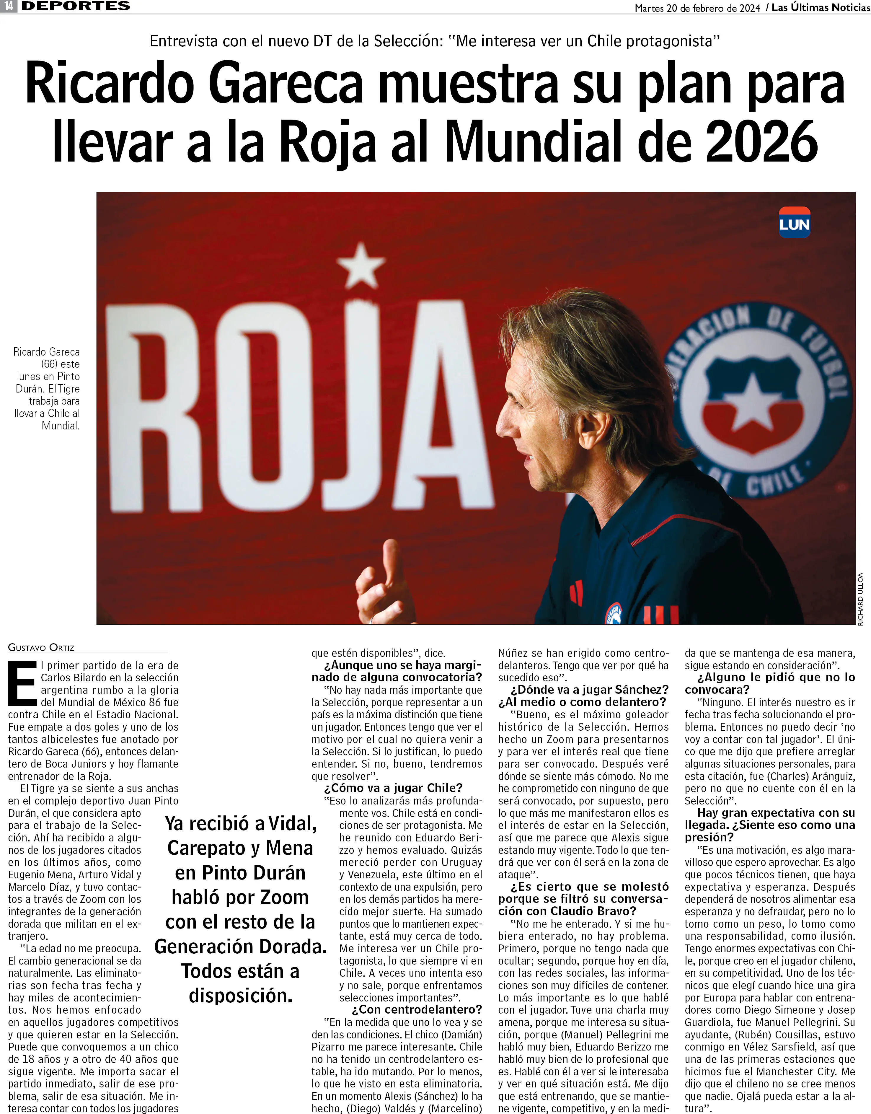 Ricardo Gareca muestra su plan para llevar a la Roja al Mundial de 2026