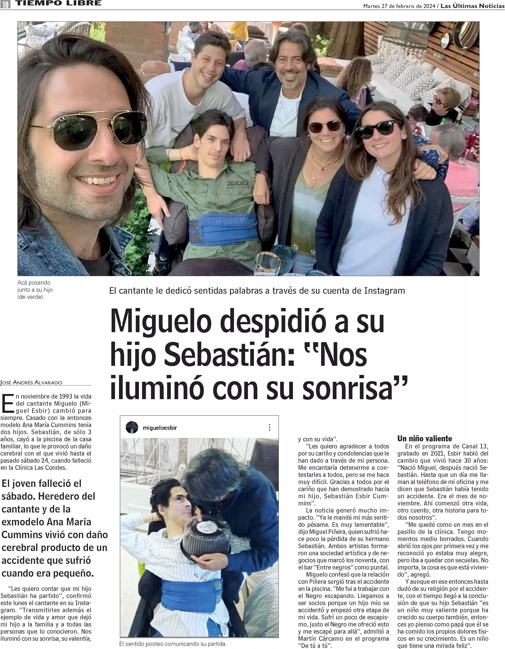 Miguelo despidió a su hijo Sebastián: "Nos iluminó con su sonrisa"