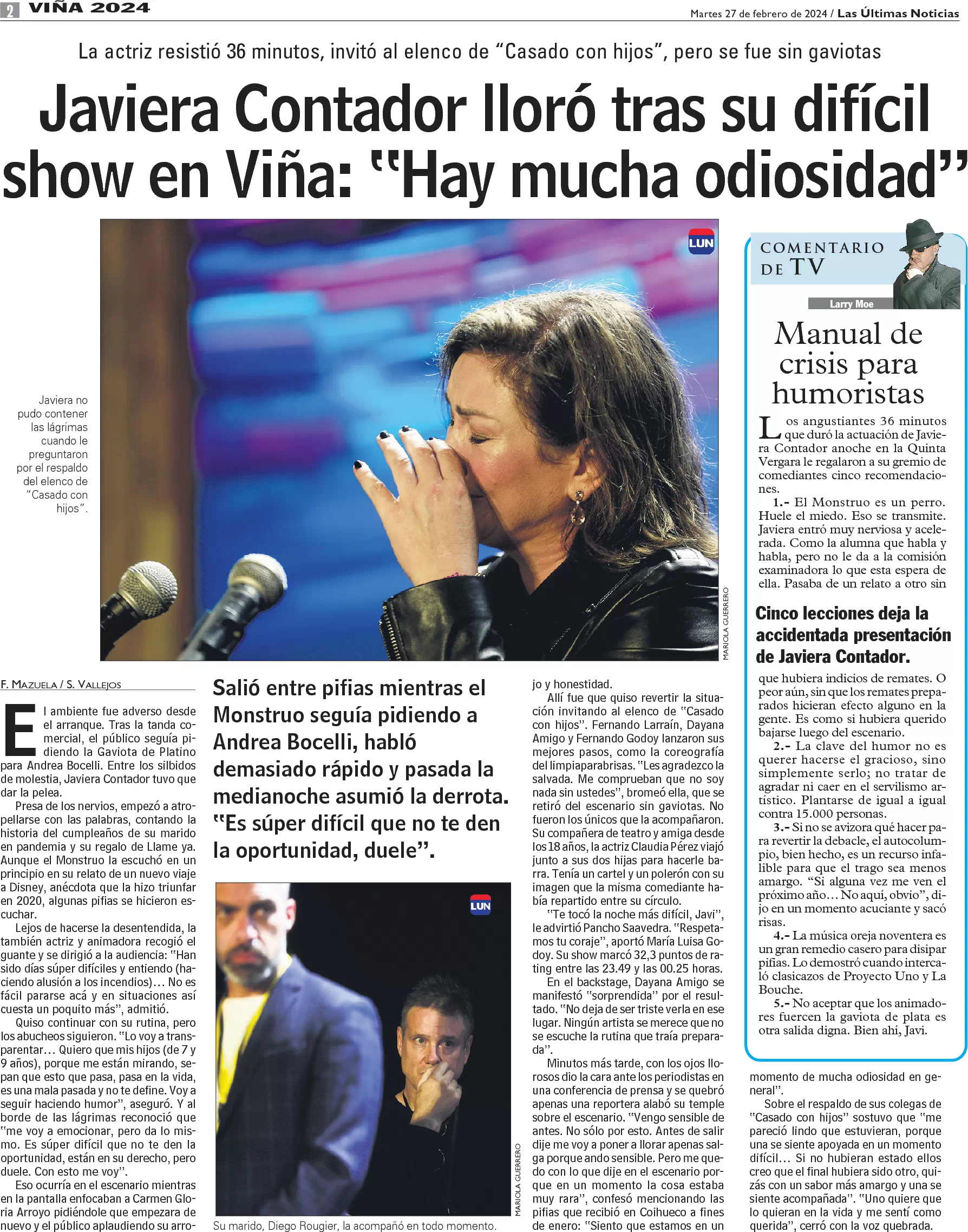 Javiera Contador lloró tras su difícil show en Viña: "Hay mucha odiosidad"
