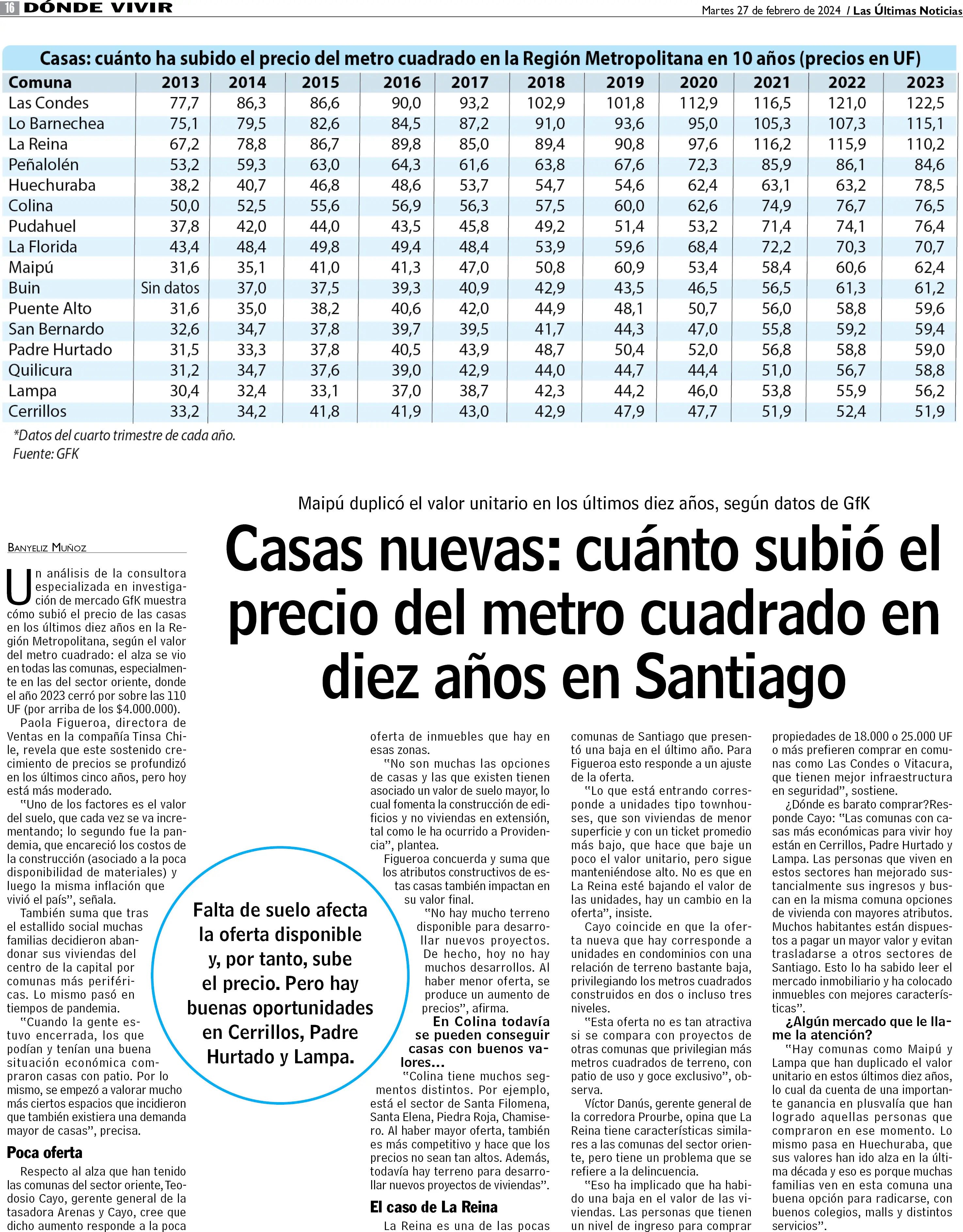 Casas nuevas: cuánto subió el precio del metro cuadrado en diez años en Santiago