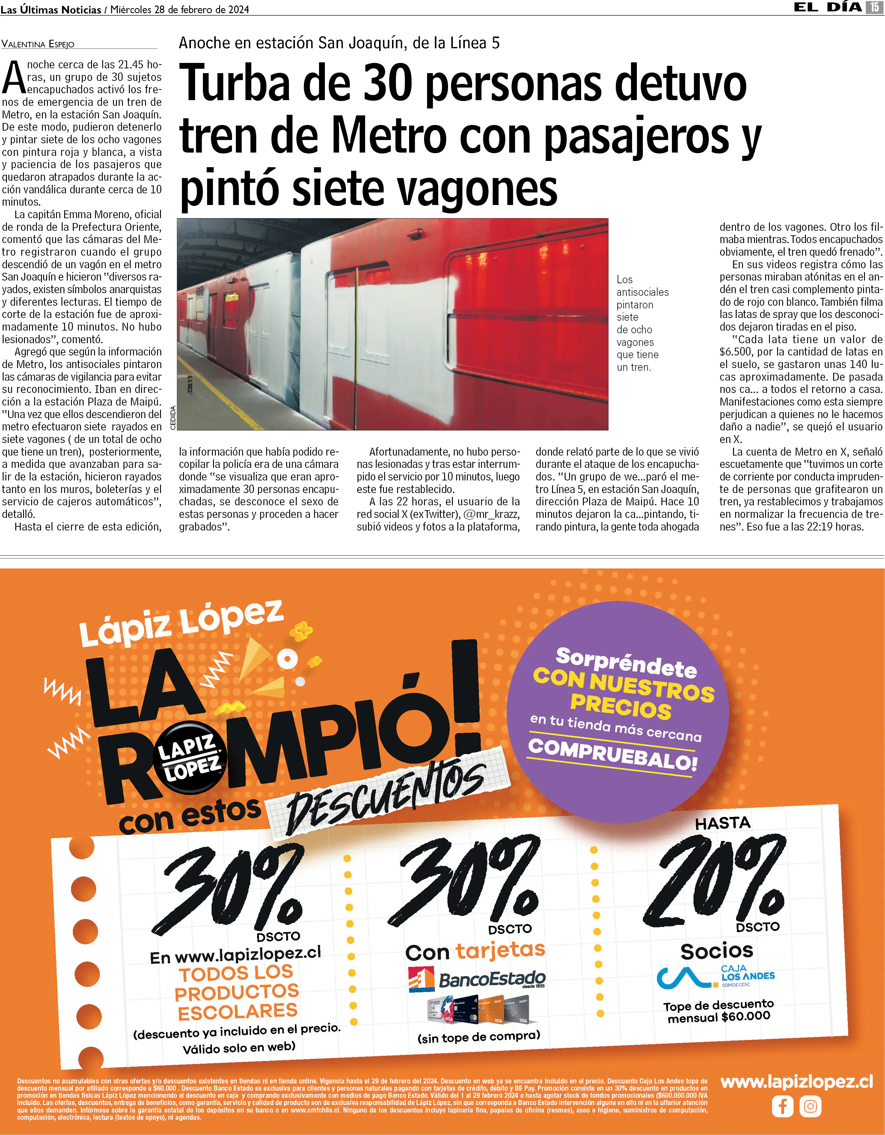 Turba de 30 personas detuvo tren de Metro con pasajeros y pintó siete vagones