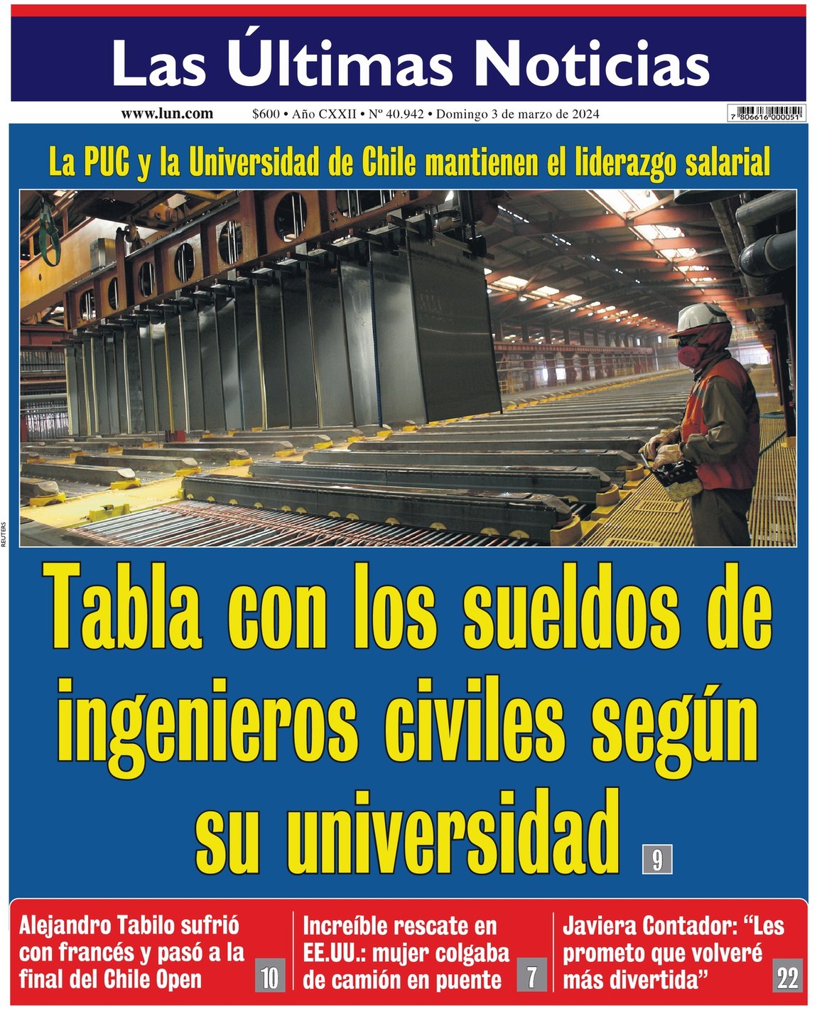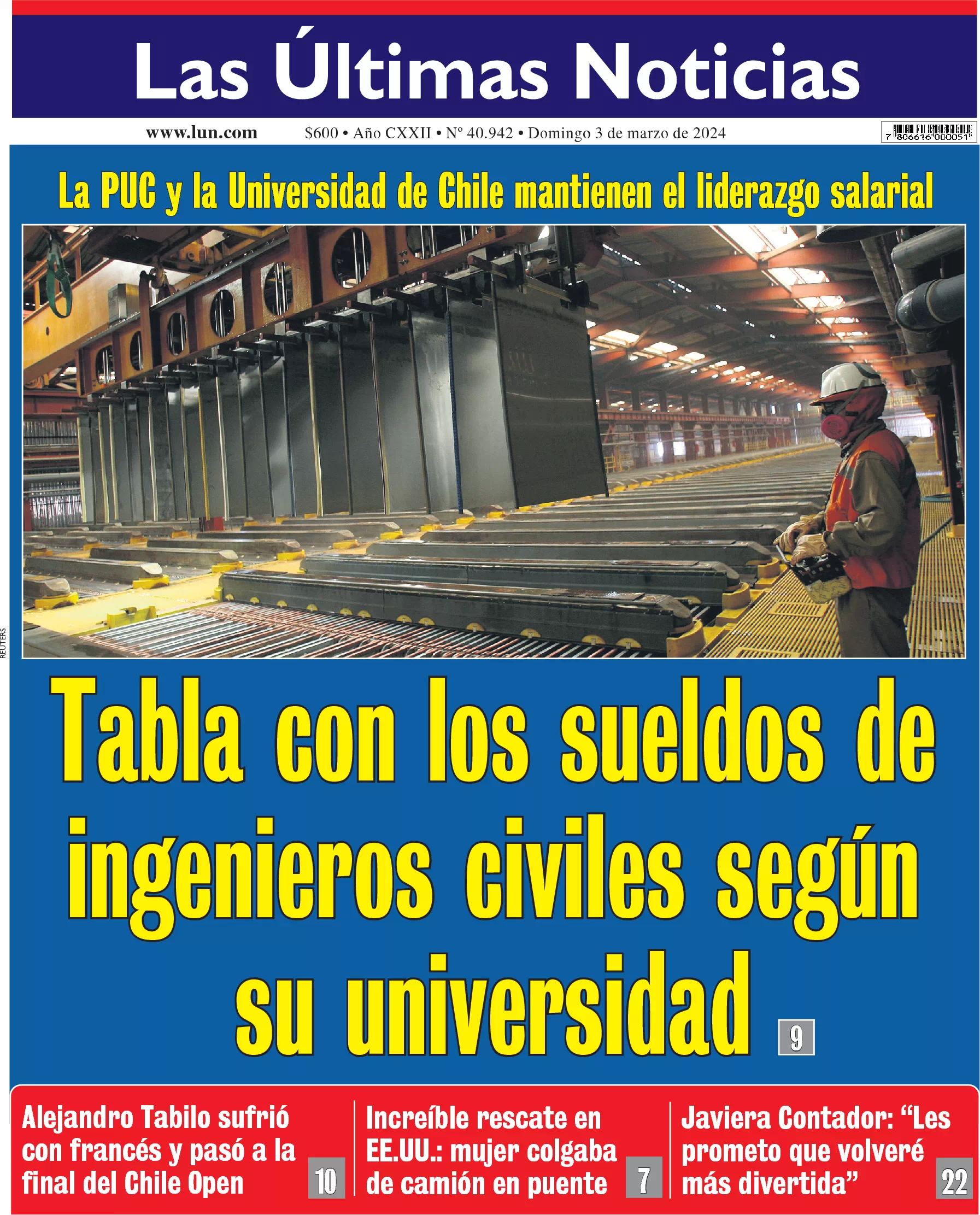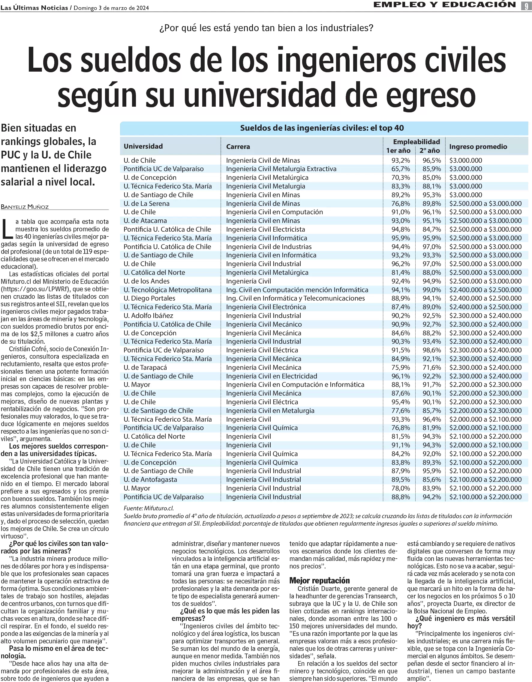 Tabla con los sueldos de ingenieros civiles según su universidad