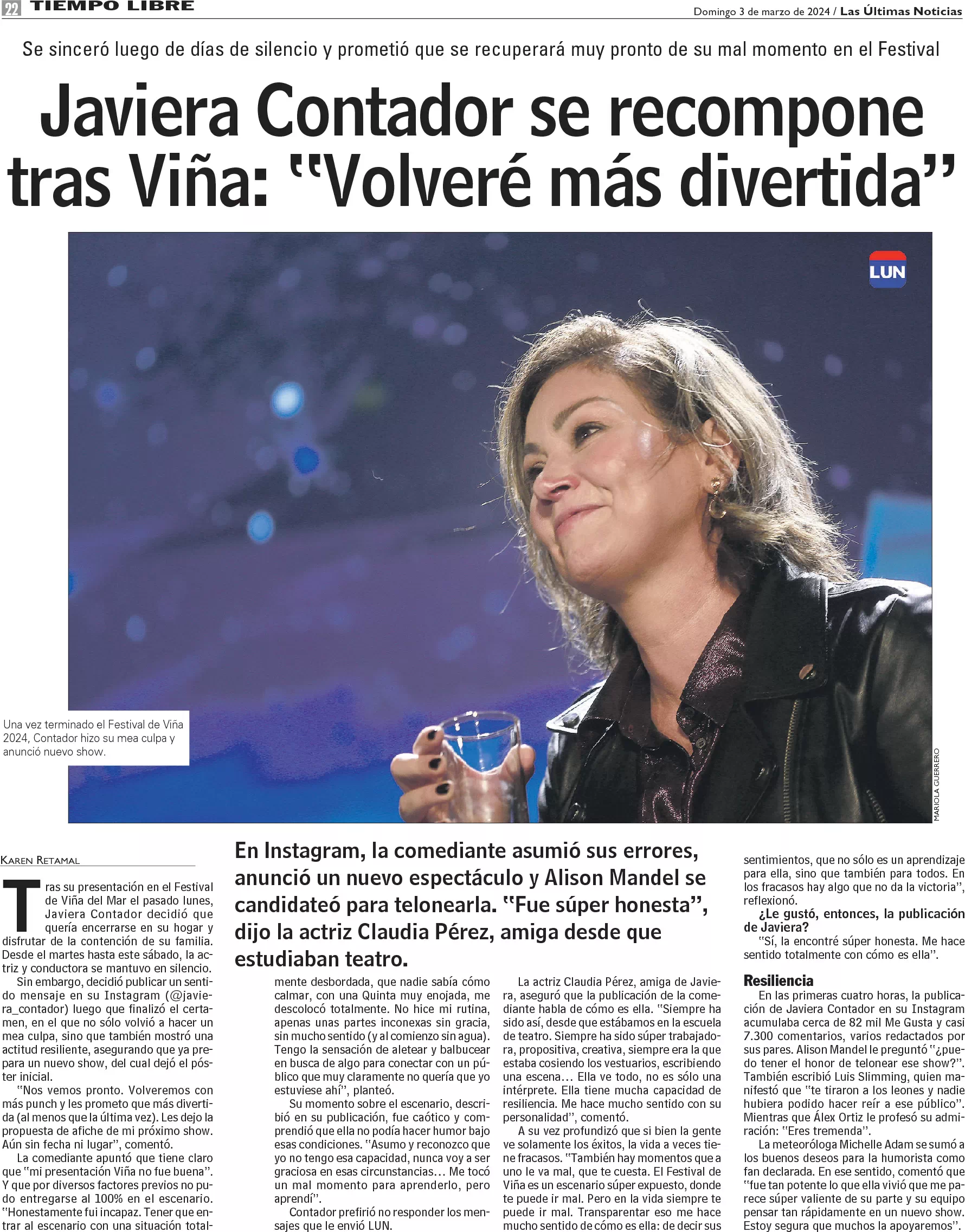 Javiera Contador se recompone tras Viña: "Volveré más divertida"