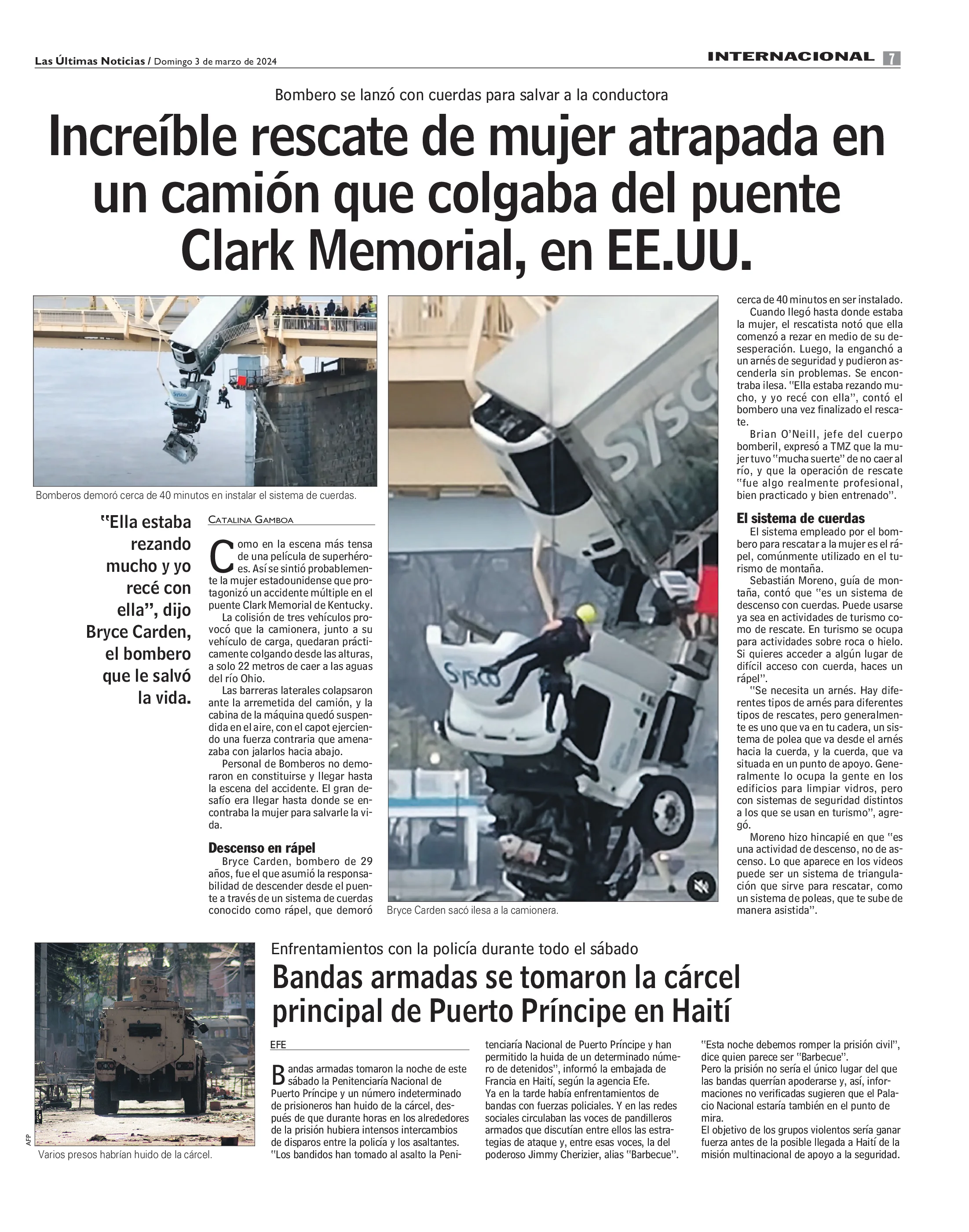 Increíble rescate de mujer atrapada en un camión que colgaba del puente Clark Memorial, en EE.UU.