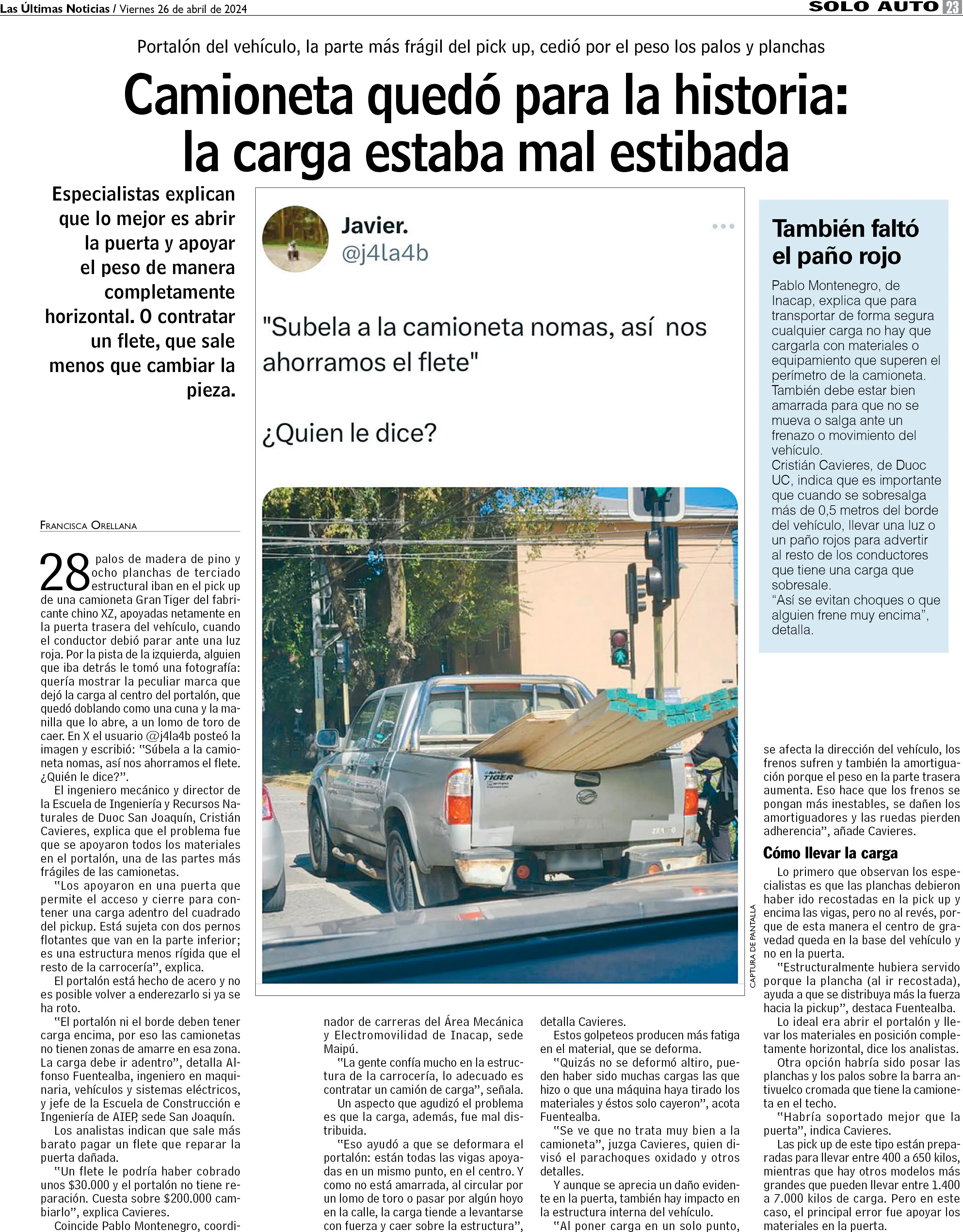 Camioneta quedó para la historia: la carga estaba mal estibada