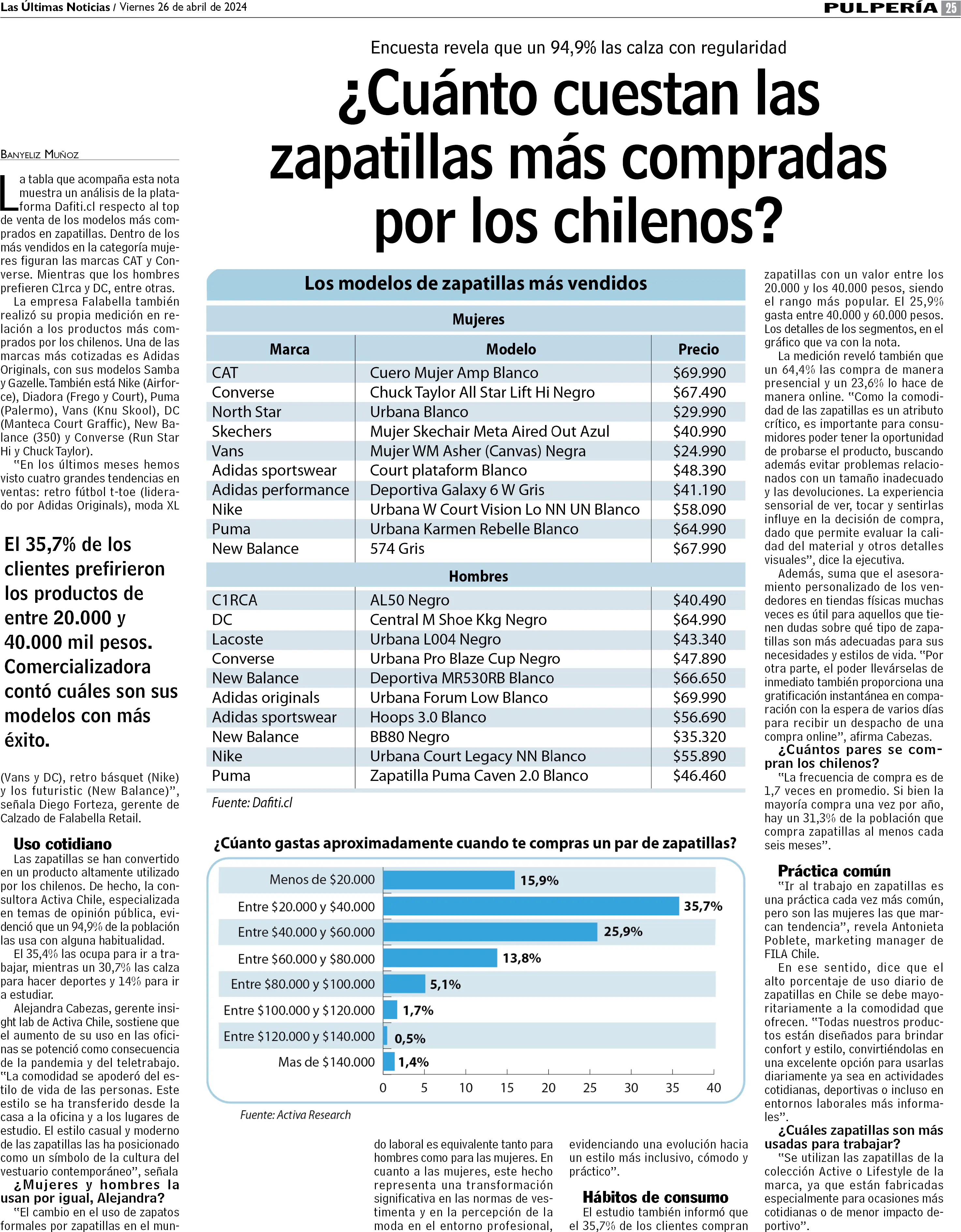 Cuánto valen las zapatillas que más compran los chilenos